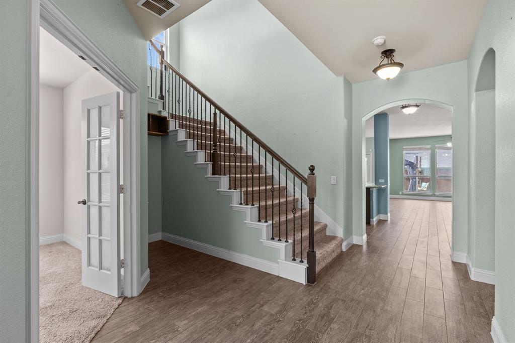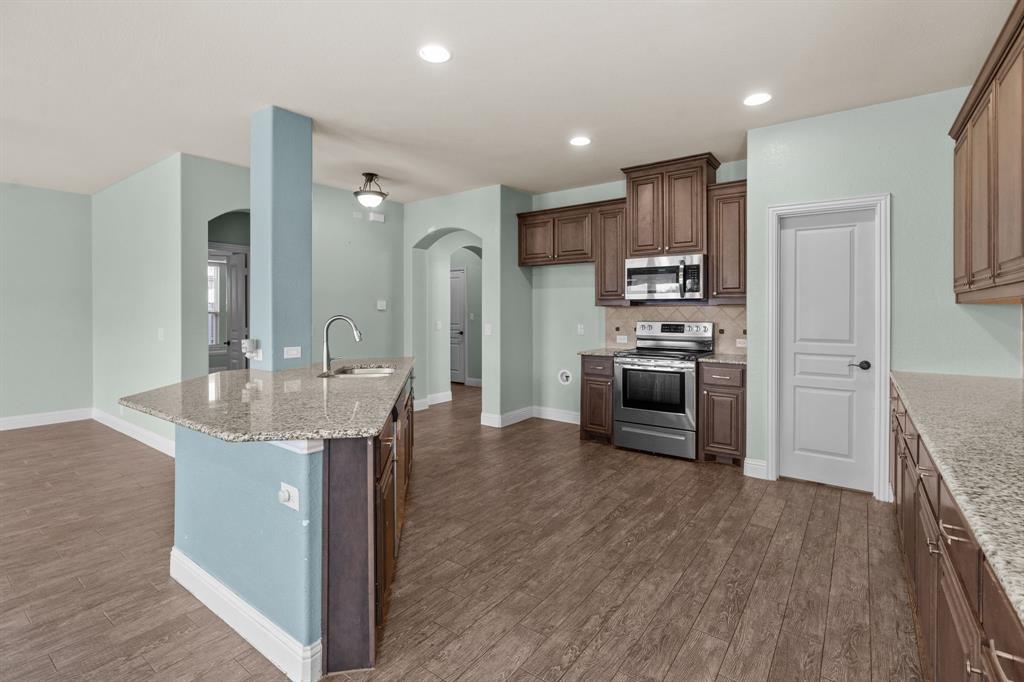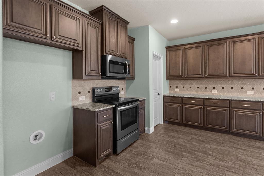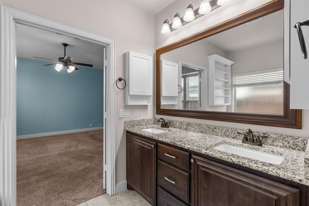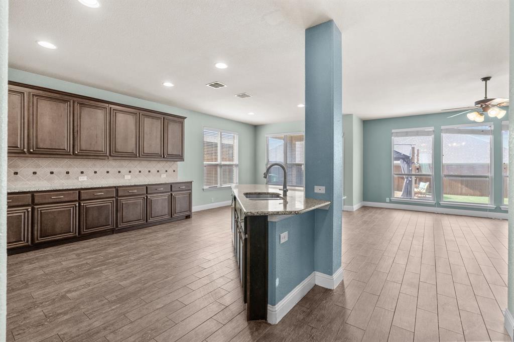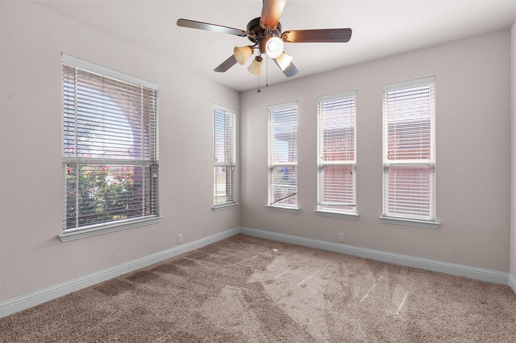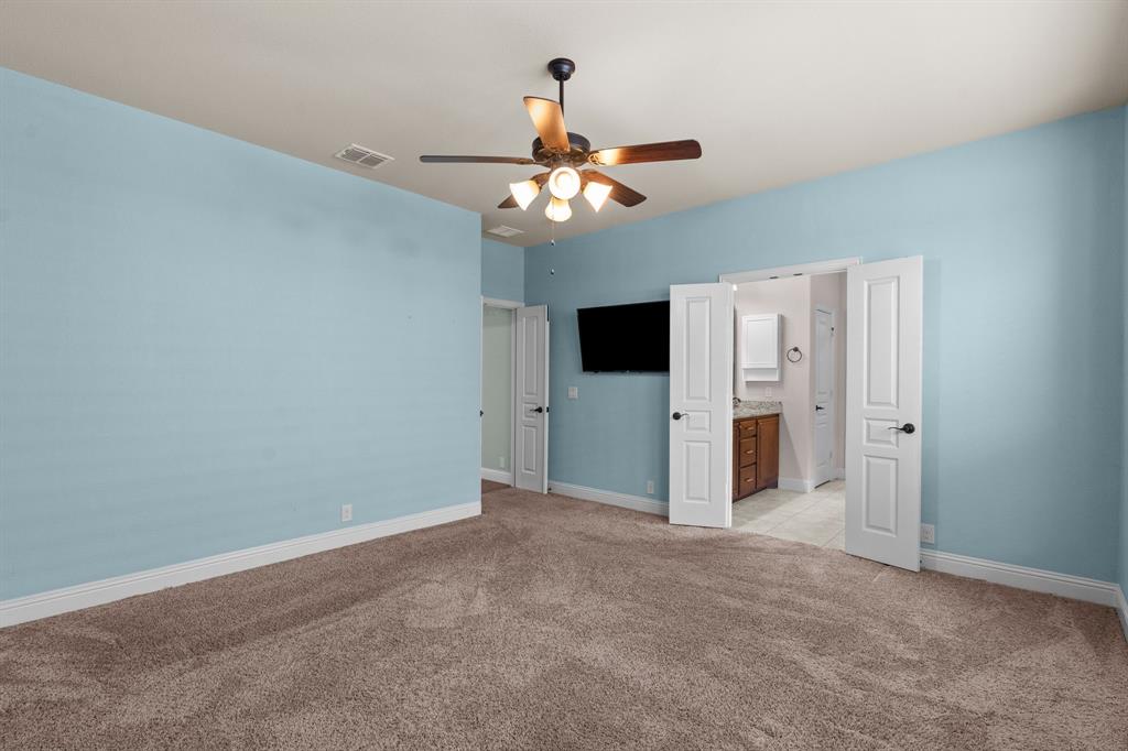 VA LOAN ASSUMABLE AT 2.25%!! This stunning oversized plan, highly sought after and set on a spacious lot in Northwest ISD, is absolutely beautiful! Featuring five bedrooms and three and a half bathrooms, this home boasts generous space in every room. The impressive kitchen includes a large island, stainless steel appliances, granite countertops, and a walk-in pantry measuring 7 feet by 10 feet. The dining and living areas are separated from the kitchen, creating an inviting space for entertaining while offering lovely views of the backyard. The primary bedroom suite features a window ledge, a walk-in shower, a garden tub, dual sinks, and a remarkable built-in closet system to accommodate all your storage needs. At the front of the home, you'll discover an office and a mudroom. The second floor showcases a spacious game room, four additional bedrooms, and a laundry area. Two oversized secondary bedrooms share a Jack and Jill ensuite bathroom, each equipped with its own walk-in closet. The other two secondary bedrooms are also quite large, featuring walk-in closets and easy access to a full bathroom located in the hallway. The backyard is perfect for relaxation and entertainment, complete with a built-in fire pit with a covering, a gardening area, and attractive landscaping. Exterior front eaves are equipped with GemStone Lighting, perfect for illuminating your home with your choice of colors throughout the year.