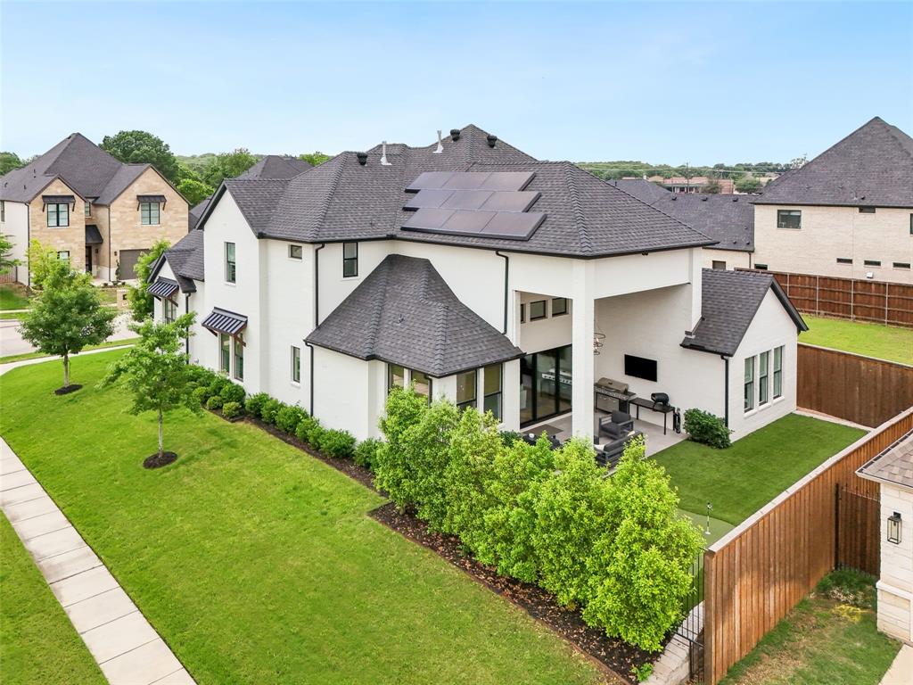 Discover a new standard of living in this like-new contemporary home, where exceptional craftsmanship meets sophisticated design and functionality. Ideally situated on a coveted corner lot in the prestigious St. Joseph Estates, this residence offers unparalleled access to the latest shopping, dining, and entertainment options along Davis Blvd. Step inside the grand foyer, where soaring ceilings and abundant natural light set the stage for the stunning interior. The family room boasts a striking floor-to-ceiling fireplace, wood flooring, and an inviting open-concept layout that seamlessly connects to the kitchen. with an oversized quartz island, sleek black stainless-steel appliances, and a wet bar that leads to the dedicated dining space. Retreat to the primary suite with dramatic 16-foot vaulted ceilings, a spa-inspired bath with a freestanding soaking tub, an oversized walk-in shower, and a generous custom closet. For ultimate convenience, the en-suite bath flows effortlessly into the wardrobe and laundry area, ensuring effortless organization. Upstairs, you’ll find spacious secondary bedrooms, offering comfort and privacy. The beautifully designed backyard is an entertainer’s dream, featuring a covered patio with decorative lighting, fully turfed landscaping, and a private putting green—perfect for relaxation and recreation. Added bonus, this home is equipped with Tesla solar panels and a backup battery system - paid in full by seller - providing savings, energy efficiency and peace of mind at no additional cost to the buyer.