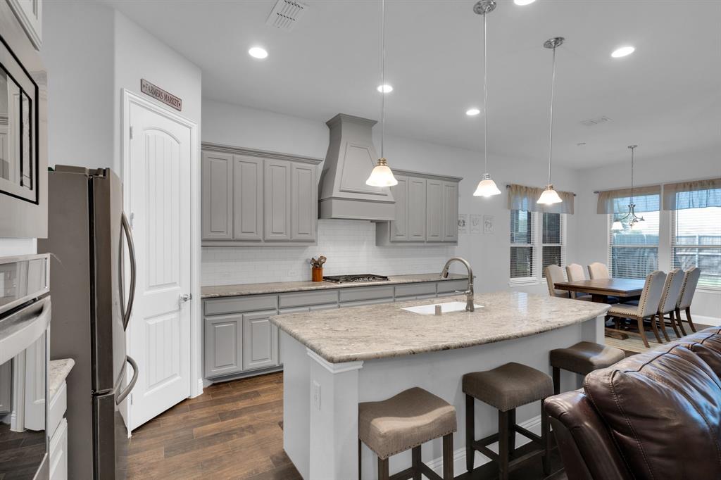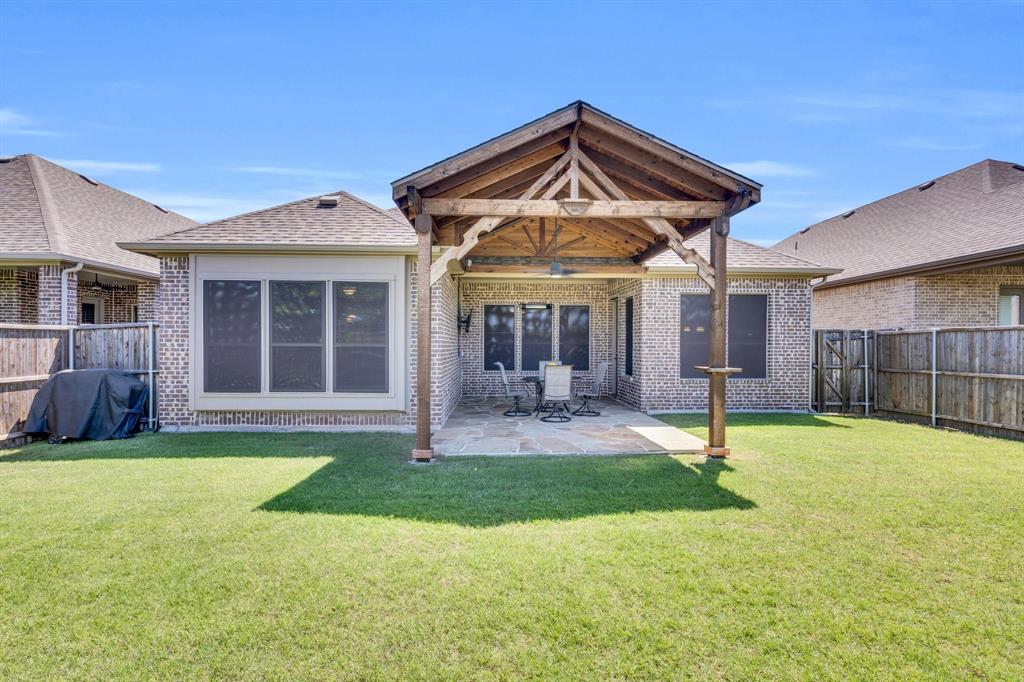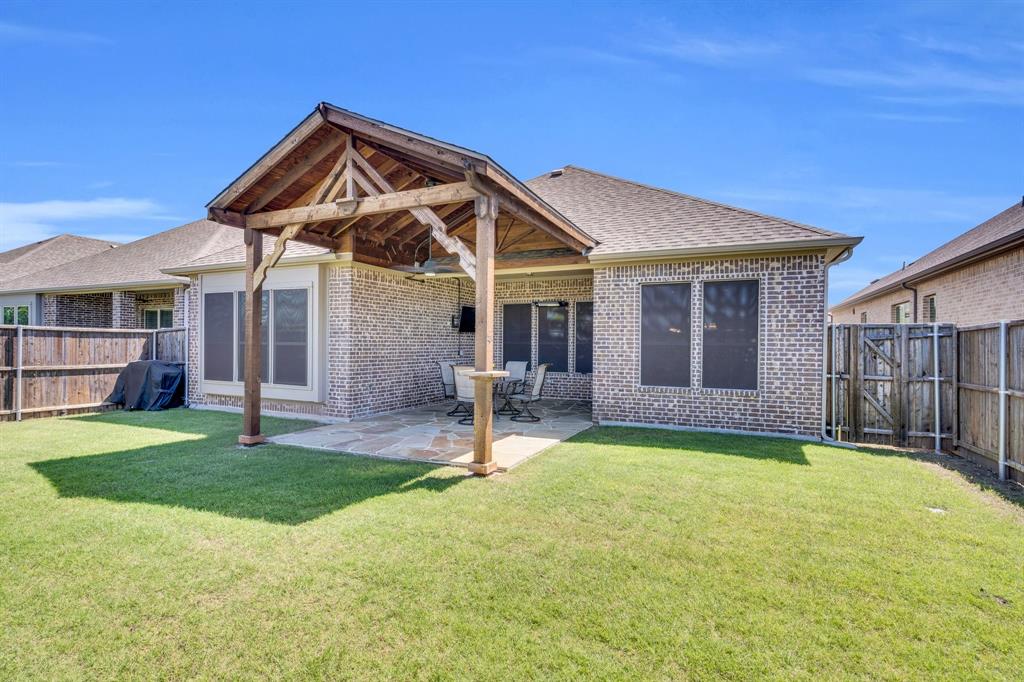 Welcome to this beautifully crafted 3-bedroom, 2-bath home with a dedicated office space and a spacious open floor plan, offering 2,156 sq. ft. of modern living. Built in 2019, this residence combines timeless curb appeal with contemporary comforts, featuring an all-brick and stone exterior and elegant decorative lighting throughout. Step inside to a light-filled layout that seamlessly connects the living, dining, and kitchen areas—perfect for entertaining or everyday living. The home is outfitted with all-gas appliances for efficient and reliable performance. The dedicated office provides a quiet retreat for remote work or study. Step outside to a charming backyard oasis complete with a stunning pergola, ideal for relaxing evenings or weekend gatherings. Located just minutes from the highly sought-after Lake Ray Hubbard and close to premier shopping, restaurants, and dining, this home offers both convenience and lifestyle. Don’t miss the chance to make it yours!