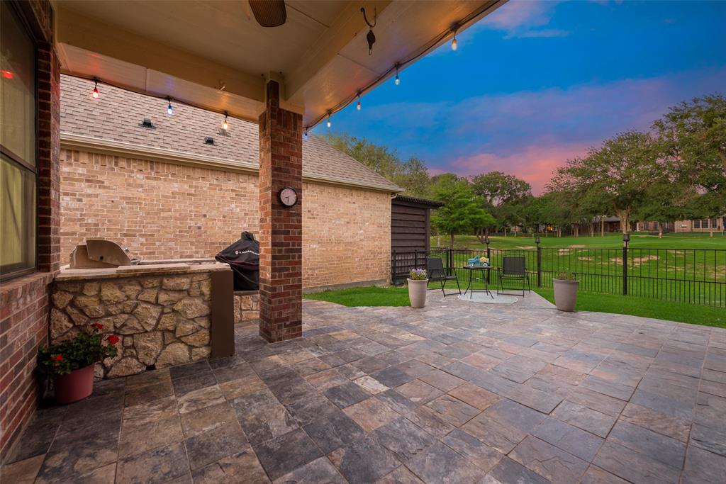 Step into timeless elegance with this stunning Tuscan villa in the prestigious Resort on Eagle Mountain Lake, perfectly situated on the 9th fairway with serene pond and golf course views. Nestled in the only 24-7 gated and guarded community on the lake, you're just a short walk from the clubhouse, restaurant and bar, fitness center, two pools, golf, and a variety of recreational amenities - including a boat ramp, pickleball and basketball courts, beach area, and more. This two-story home has been meticulously maintained and offers 4 bedrooms, 2.5 bathrooms, and a spacious open floor plan thoughtfully designed. Entertain with ease in the expansive game room upstairs or enjoy unforgettable evenings outside on the extended patio with an outdoor kitchen. The kitchen is complete with granite countertops, breakfast bar, stainless appliances, convection oven, and a walk-in pantry. Retreat to the primary suite on the main level that includes a jetted tub, oversized shower, dual vanities, and a custom-built closet by Closet Factory in 2023. Upstairs you'll find three additional bedrooms, a full bath, and French doors leading you to the balcony. This home shows true pride of ownership and is move-in ready! Recent upgrades include - Interior and exterior paint, flooring, updated primary bath, and outdoor kitchen added in 2020, New HVAC and skylights in 2022, new roof, grinder pump, and windows replaced in 2023, French door, foam insulation, and epoxy floors in the garage in 2024, and patio resealed and interior touch ups in 2025. Zoned for the brand new high school - Eagle Mountain High!