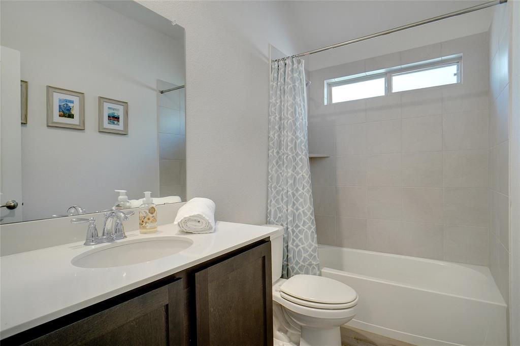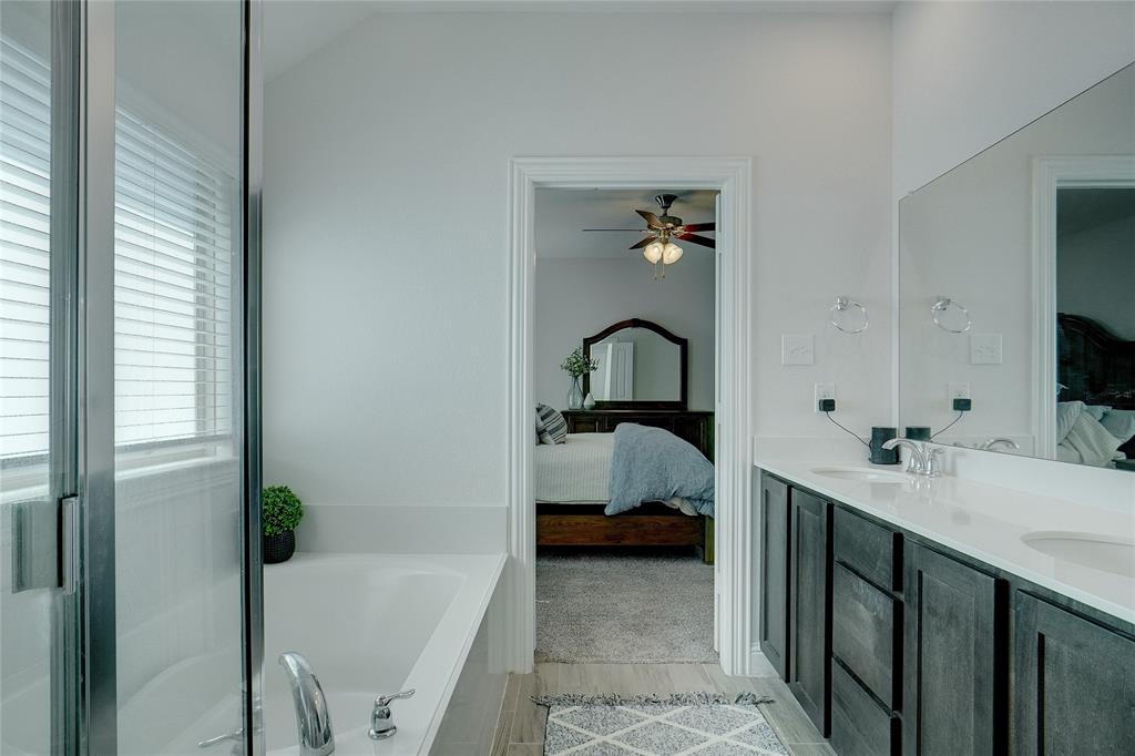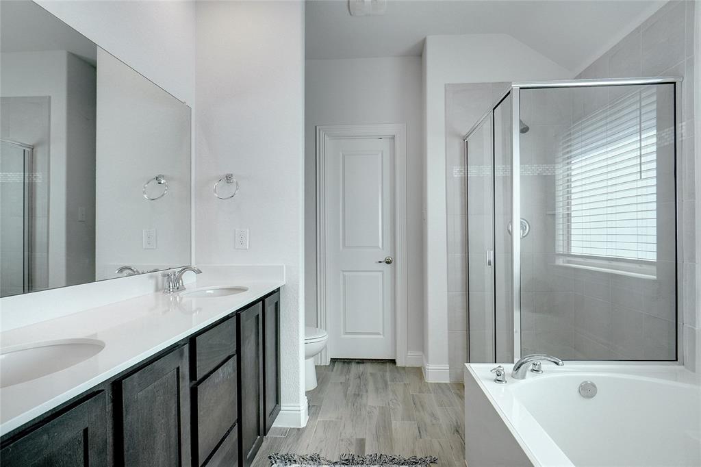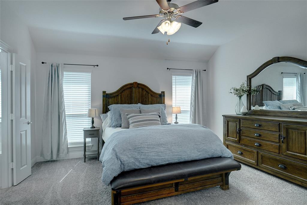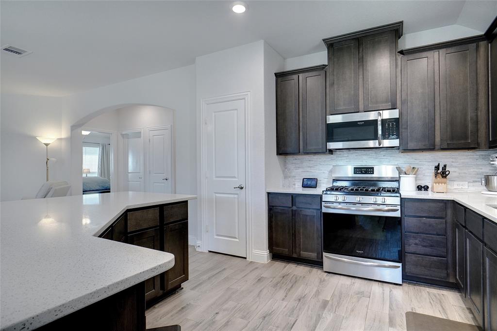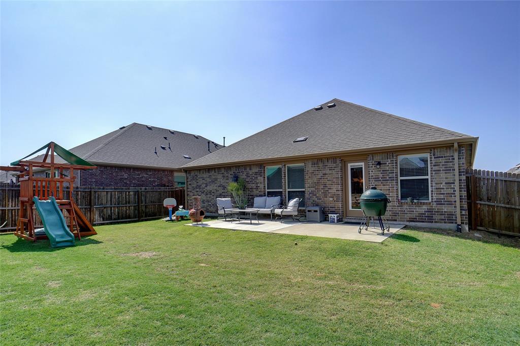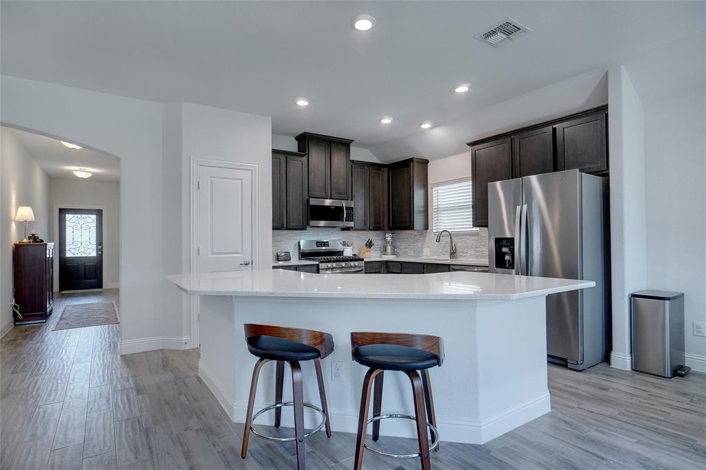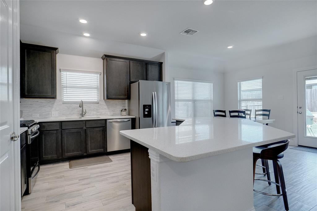 OPEN HOUSE 2-4pm on Sunday 9-14! Nice curb appeal with stone accent front and attractive raised stone landscape accent bed. This better than new, light & bright full brick home located on a quiet interior street just a short walk to park and pool and school in popular Silverado community. Entertain in a totally private backyard with concrete patio extension and space for swing set and trampoline. Extensive LVP floors everywhere except 3 carpeted bedrooms, nice living room with accent fireplace wall, open eat in kitchen with pantry, gas range, LED can lights & attractive stained cabinets contrasting with white quartz breakfast bar and ample countertops. Split spacious master suite with WI closet, tub & separate shower, stained cabinets contrast with dual sink white vanity Secondary bedroom accommodates adult size queen bed. Small country hometown feel with welcoming neighbors and minutes away from Main street, HWY 377 and HWY 380, grocery store, restaurants & entertainment.
