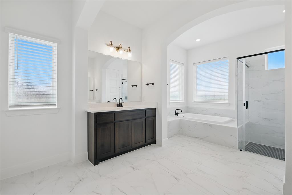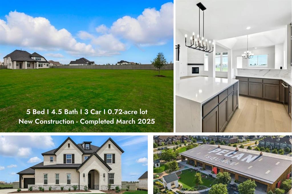 Welcome to your dream home! NEW Home completed in March 2025! This stunning residence boasts 5 spacious bedrooms ( 2 down & 3 up), 4.5 beautifully appointed baths, Home office, Media, & Game room offering ample space and luxury for the entire family. As you enter, you'll be greeted by an expansive open-concept living area that seamlessly blends the living room, dining room, and kitchen, creating an ideal space for entertaining and everyday living. The kitchen is a showstopper, featuring premium Café appliances, an impressive Quartz waterfall island with seating, and elegant upper cabinetry—ideal for culinary adventures and gatherings. Adjacent to the kitchen, the living area flows effortlessly onto a large covered patio overlooking the .72 acre backyard, perfect for creating your dream oasis. The main-level primary suite is a serene retreat, boasting a spa-like en-suite bath with a soaking tub, a separate glass-enclosed shower, and split vanities. Upstairs, a versatile media room and game room offer endless entertainment possibilities. Four additional bedrooms provide plenty of room for family and guests, each thoughtfully designed with comfort and style in mind. With its thoughtful upgrades, impressive amenities, and prime location, this residence invites you to experience a lifestyle of sophistication and ease. Pecan Square provides array of exceptional amenities designed to enhance your lifestyle. Enjoy access to multiple resort-style pools for leisurely afternoons, convenient Amazon lockers for seamless package deliveries, and a modern co-working space perfect for remote work. The community also features covered sports courts for active recreation, versatile event spaces for gatherings, and a well-equipped fitness center to support your wellness goals. Embrace the vibrant community spirit with unparalleled amenities and make this exceptional property your new home. Schedule your private showing today! Contact listing agent for more information.