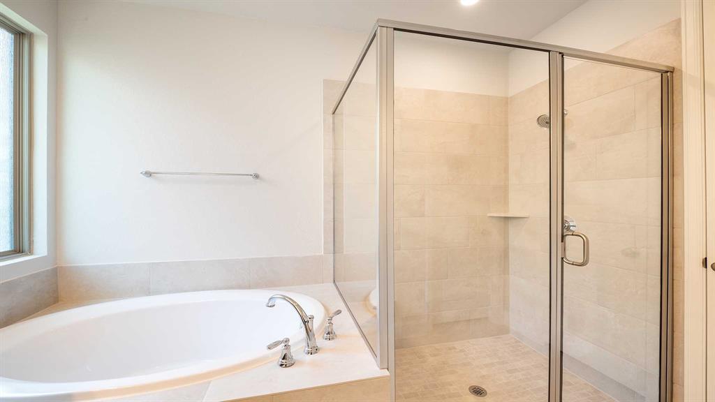Entry welcomes you with a 12-foot ceiling. Open kitchen offers a center island and spacious pantry. Dining area flows into open family room with wall of windows. Secluded primary suite includes primary bath with dual vanities, garden tub, separate glass-enclosed shower and a large walk-in closet. Abundant closet space in the secondary bedrooms. Covered backyard patio. Mud room off the two-car garage.