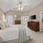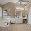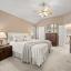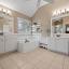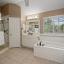 The primary suite features vaulted ceilings and an en suite bath with dual vanities, soaking tub, separate shower, and ample storage.