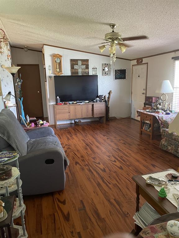 Wonderful location in the country but close to the city and easy access to I35. Bring your TLC and your horses. Freight container stays, three sides are fenced, covered front porch to enjoy morning coffee or evenings. Plenty of room for a pool or room to park your RV. This diamond in the rough just needs you to put your touch on this property where the mobile home title has been surrendered and is attached to the land. Has eat in kitchen with breakfast bar and separate dining room. Fairly open floor plan with living area, dining and kitchen also with split bedrooms.