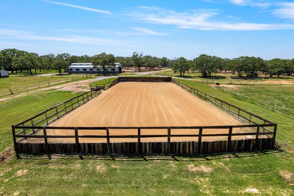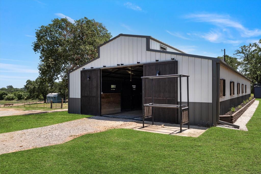 First time on the market for this equestrian estate! Currently the home of an elite sport horse training facility, this 26+ acre property features a 2020 custom home,10 stall show barn, a USDF regulation sized arena, 25X35 shop, additional outbuilding, an adorable guest home, & 3 sides of road frontage with multiple entrances for ultimate flexibly and convenience. The layout of the property has been carefully designed for business efficiency & equine comfort. Home & barn each have separate water wells & electric meters. The barn is insulated and its higher elevation provides summer breezes. Each 12x12 stall has Stall Saver mats which drastically reduce shavings costs! 2 grooming stalls, a wash stall, bathroom, tack room with washer & dryer, & an office provide all accommodations necessary for a turn-key operation. The 65X195 outdoor arena features superb professional footing and is accessible just a short distance away, as are multiple pipe and no-climb sandy loam turnouts. The custom 2020 modern farmhouse featuring a bright & open floor plan is what dreams are made of! The front and back porches extend the full length of the home, offering tranquil views of the property and a large stocked pond. A modern kitchen with granite countertops, oak hardwood flooring, & a luxurious primary suite make the home both elegant and inviting. An engineered foundation, 1000sqft insulated attic, owned solar panels providing $1000 in cost savings annually, and a foundation crawl space for the housing of well infrastructure ensure functionality and peace of mind. Just beyond the home, a large 25X35 shop provides additional parking and hay storage. Guests or employees will love the fully finished guest home! 3 additional ponds provide critical water for livestock in the summer months & pastures have been regularly maintained, even providing good quality hay. Just 40 minutes to Fort Worth or 45 minutes to DFW airport!