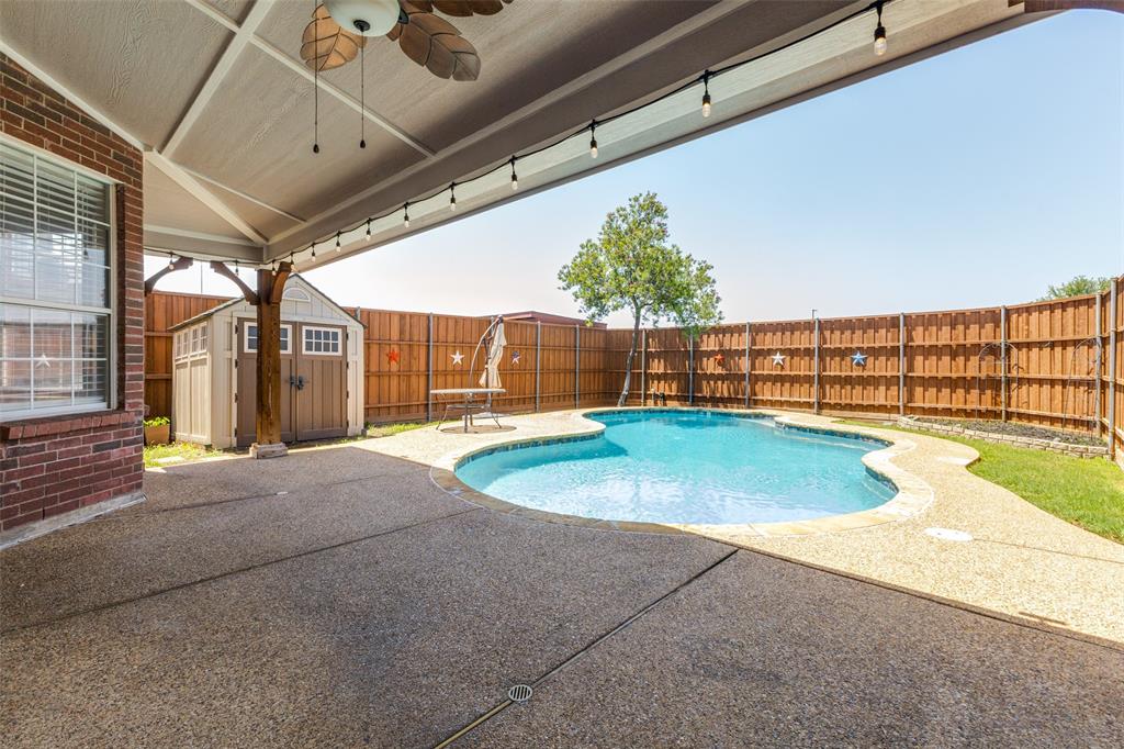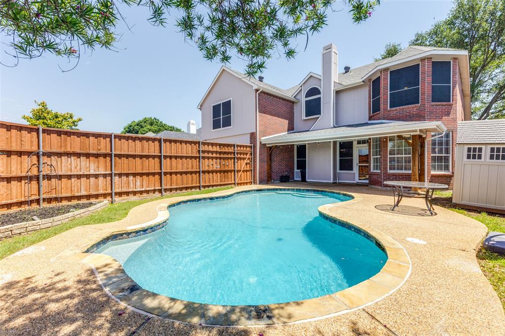 Welcome to your dream home! This beautifully designed property offers the perfect blend of comfort, space, and style. Step inside through a grand entryway with soaring ceilings and an elegant staircase that sets the tone for the rest of the home. Off the entry, you'll find spacious formal living and dining rooms—ideal for entertaining. The heart of the home is a generously sized kitchen, featuring an abundance of cabinet and counter space, a central island, and a cozy eat-in nook. Adjacent to the kitchen, the family room invites you to relax by the warm fireplace, creating a welcoming atmosphere for gatherings. A standout feature is the expansive utility room, complete with a sink and plenty of space for storage or hobbies. Outdoors, enjoy your own private oasis with a sparkling in-ground pool and a covered back patio—perfect for summer fun or year-round entertaining (in the past the sellers have enjoyed watching the Firewheel Town Center 4th of July fireworks from the comfort of their own pool). Surrounded by mature trees that provide natural shade and privacy, this property offers both tranquility and functionality.