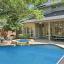 The backyard allows more for room for entertaining, swimming with mature trees that provide shade making it the perfect space year round.