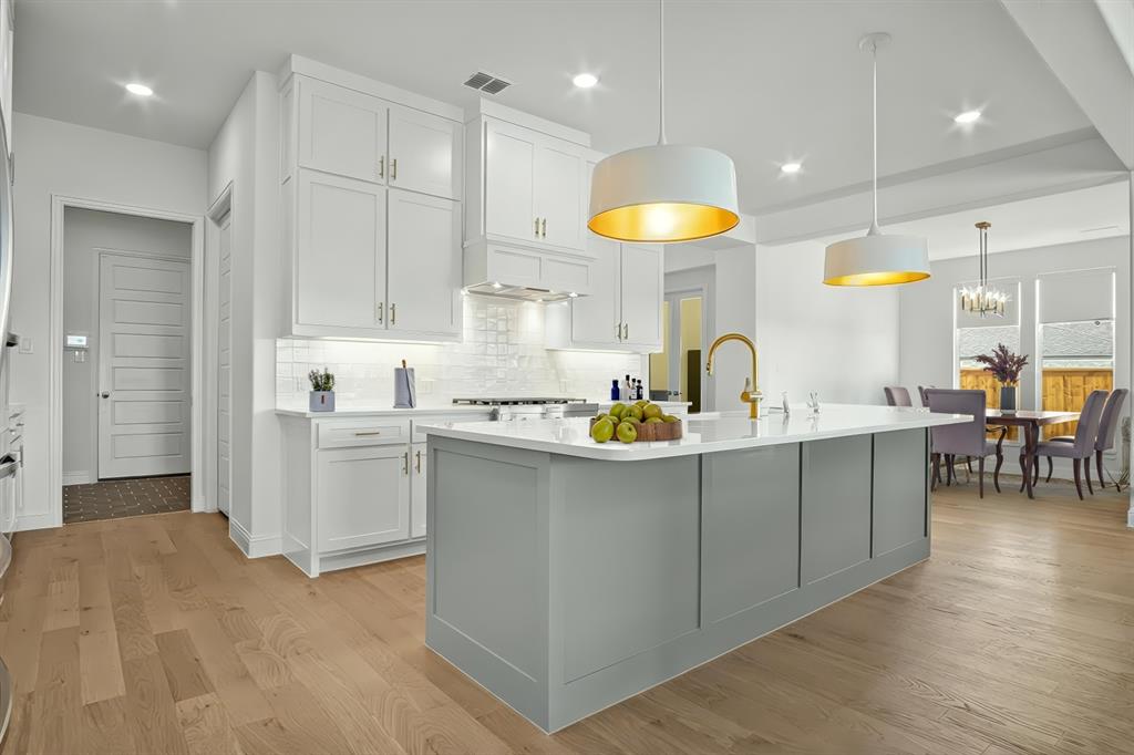 This thoughtfully designed home features five spacious bedrooms, four full baths, a dedicated home office, a formal dining room, a media room, a game room, and an enclosed dry bar. The gourmet kitchen with a large island flows seamlessly into the family room and breakfast area, creating the perfect open-concept space for both everyday living and entertaining.