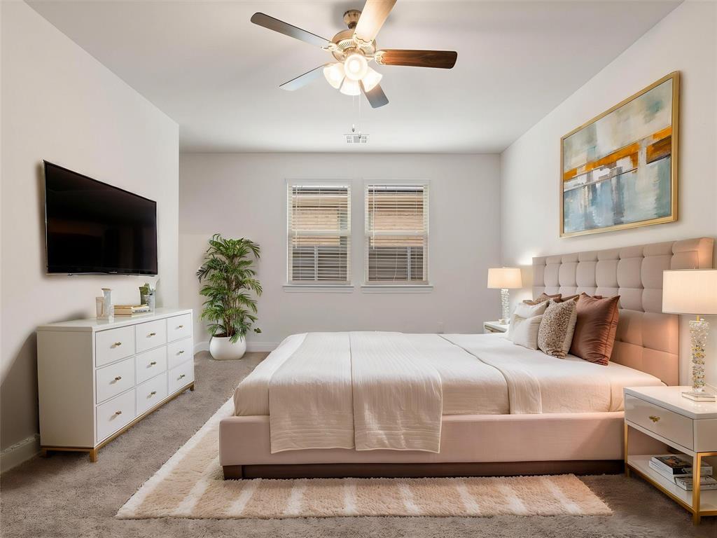 Priced below market value! Motivated seller! $40k+ worth of solar panels with a transferable warranty INCLUDED in the price of this home. Don’t miss out on this RARE opportunity for SAVINGS! Welcome to this stunning, bright home nestled in the desirable amenity-rich community of Union Park! Step inside and be welcomed with soaring ceilings and tons of natural light throughout the house. The open-concept kitchen offers Quartz countertops, gas cooktop, plenty of cabinet space, and a large kitchen island overlooking the living and dining areas. The secluded primary bedroom offers a walk-in closet, an en suite bath with dual sinks, and a separate shower and tub. Upstairs is an entertainer's dream with a spacious game room and 3 bedrooms that provide ample room and comfort. Spend quality time in the wonderful-sized backyard with a covered patio! Enjoy all the amenities at the Union Park including pools, walking trails, fitness center, parks, clubhouse, and much more! HOA maintains the front yard and security system. Don’t miss this beauty!