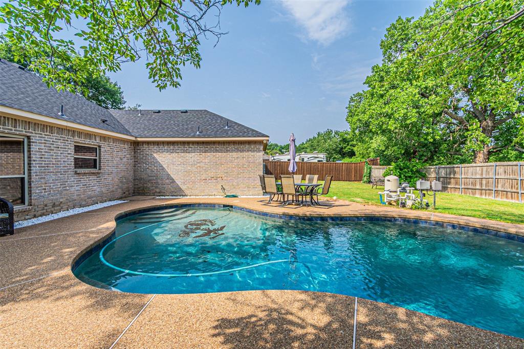 * This lovely custom home features just over 2900 sq ft of space * It is a very roomy 3 bedroom, 3 full bath home with an oversized yard to easily accommodate the refreshing salt water POOL yet still provide a large back yard space * Located in the highly desired Lewisville Valley neighborhood & close to all schools * This home was built in 2009 and features a wonderful open concept layout with a large kitchen and dining area * Hardwood flooring * Fireplace in the Primary bedroom & in the living area * All 3 bedrooms are oversized and have an attached full bathroom * Bonus room can be an office, nursery, or craft room * One of the bedrooms could work well as a mother-in-law type suite * Storage building in back yard * A short walk on the walking trails behind the home leads to a great park area * Come see it soon!