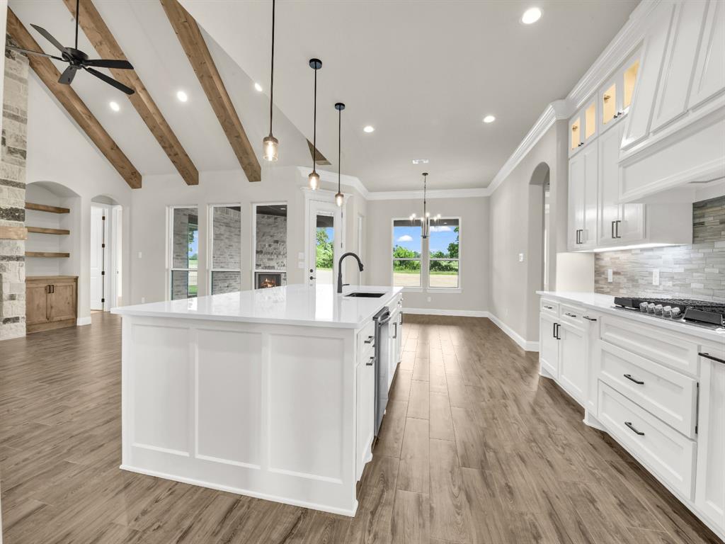 MOVE IN READY WITH 10K CONCESSIONS! LBK Homes has just completed a New Traditional Style home at the Brand NEW Sub-Divsion Rangewood . This is a beautiful 2 acre Home with 3 bedrooms, study, dining, game room and 3 car garage with 3 bathrooms. The home has an inviting foyer that brings out the spacious family room filled with excellent cross beams and craftsmanship throughout. The kitchen is accompanied with an enormous quartz island in the center, double ovens with a pot filler all stainless steel and lg over sized cabinets with upper and lower cabinet lighting. The primatry suite has a large walk in closet a separate tub and a separate shower and vanities. Full encapsulation for excellent efficiency. Underground utilities with AT&T fiber as internet provider. NO HOA and NO City Taxes! Home is now 100% COMPLETE!