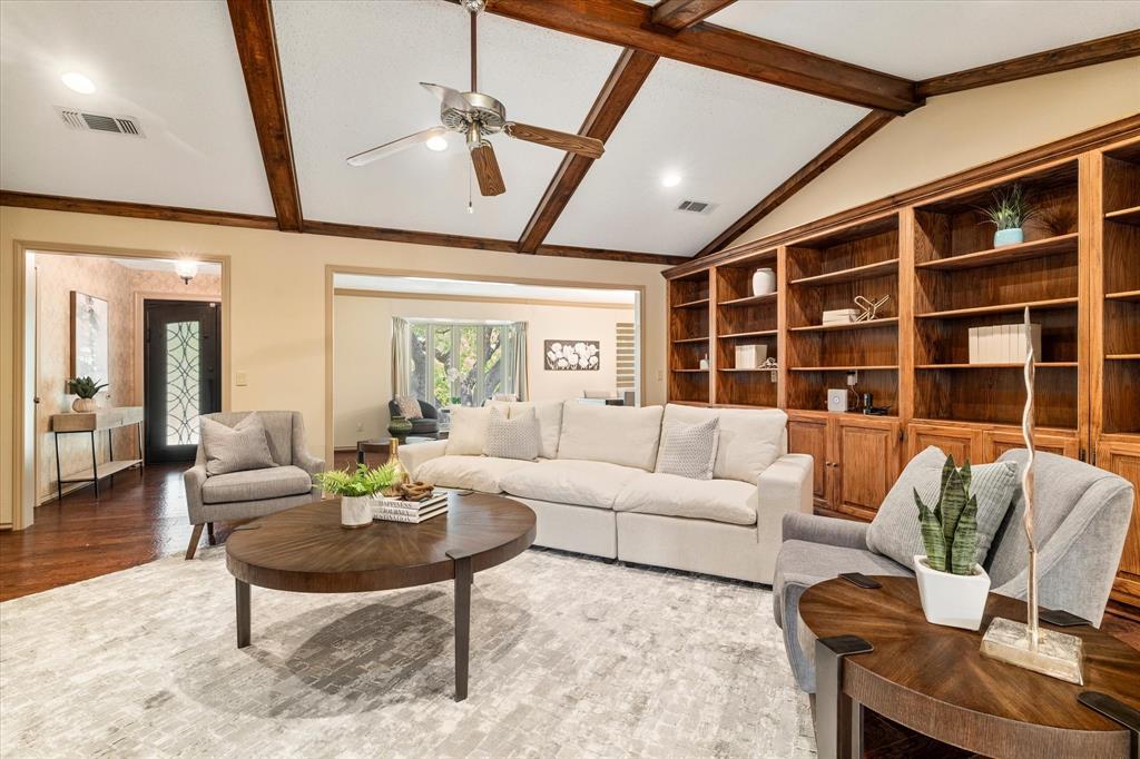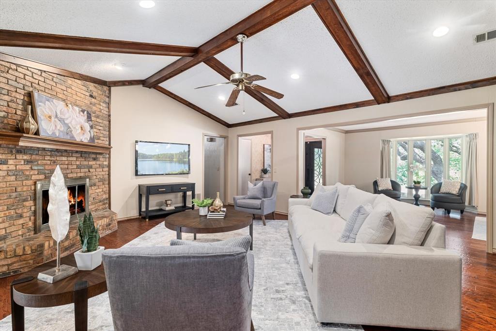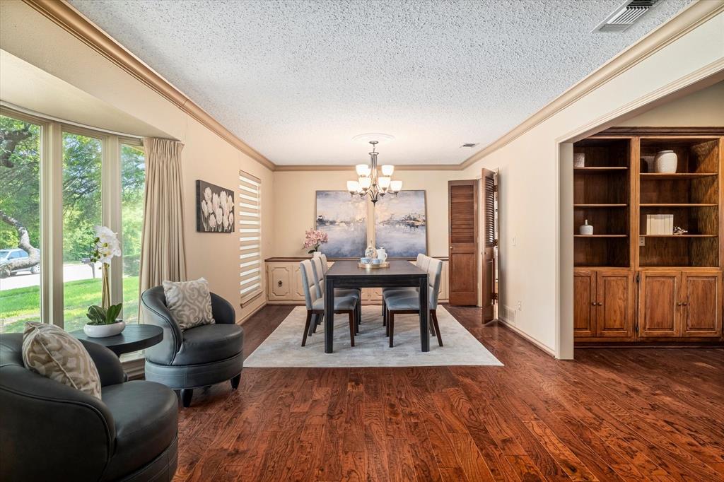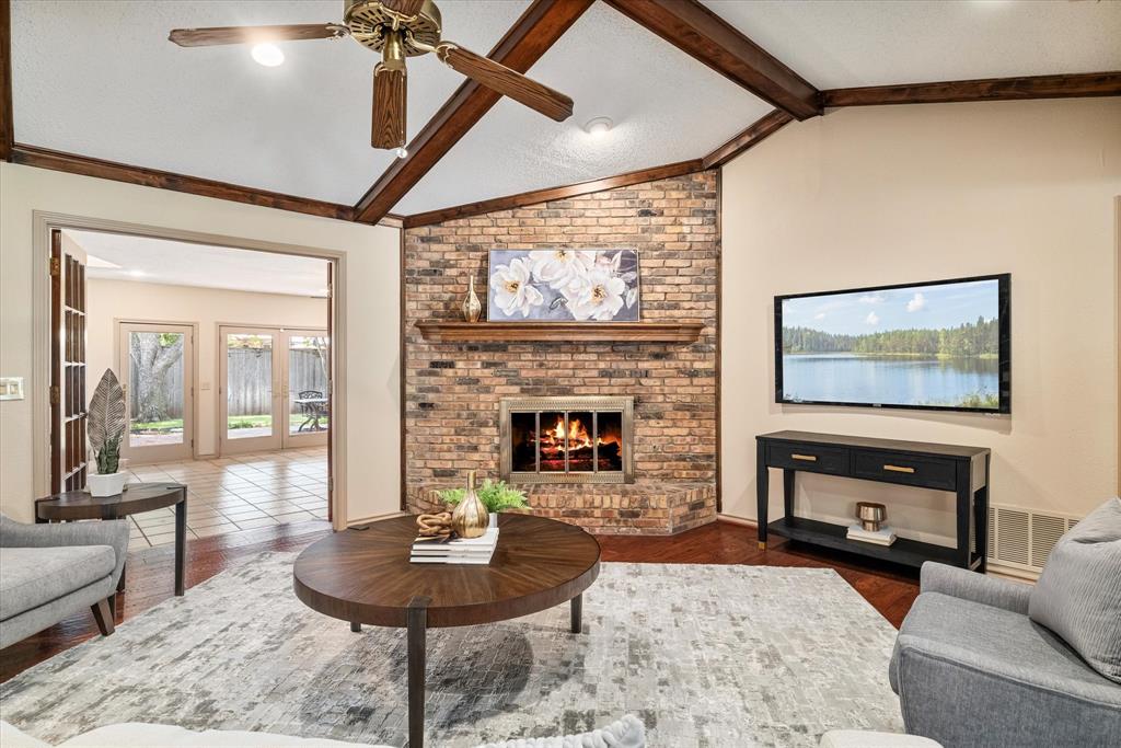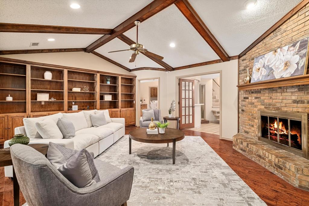 Welcome to this beautifully landscaped brick home offering exceptional curb appeal, thoughtfully designed layout. Prime location with no HOA provides easy access to top-rated schools, shopping, dining, and recreational facilities, making it a truly exceptional find with over $40k of improvements. Nestled in a quiet, mature neighborhood across from a scenic greenbelt, this home blends classic elegance with modern comforts, just minutes from Highways 75 and 190 for a easy commute and close to dining, shopping, and entertainment. Step through the striking double iron and glass front doors into a space with natural light and rich in character. Gorgeous wood flooring guides you into the formal dining room, complete with charming bow windows and custom built-in cabinets. The sophisticated galley kitchen features an abundance of beautiful cabinetry, natural stone backsplash, and under-cabinet lighting, all seamlessly connected to a cozy breakfast nook with a pass-through to the spacious family or game room. The heart of the home is the expansive living room, showcasing vaulted, wood-beamed ceilings, a wall of custom built-ins, and a timeless brick fireplace, a perfect place to unwind. The oversized primary suite is a true retreat, featuring tray ceilings and an en-suite spa-like bath with a claw-foot soaking tub and separate shower. Each of the additional five bedrooms is generously sized, offering space and comfort for family, guests, or a home office. Recent upgrades include a full replacement of the cast iron plumbing system with new PVC, a new electrical panel with generator hookup capable of powering the entire home, and a new condenser fan motor and blade for the upstairs HVAC unit. Step outside to a fully fenced, private backyard oasis with a huge pergola-covered patio, ideal for outdoor dining or relaxing evenings under the stars. Schedule your private tour today!