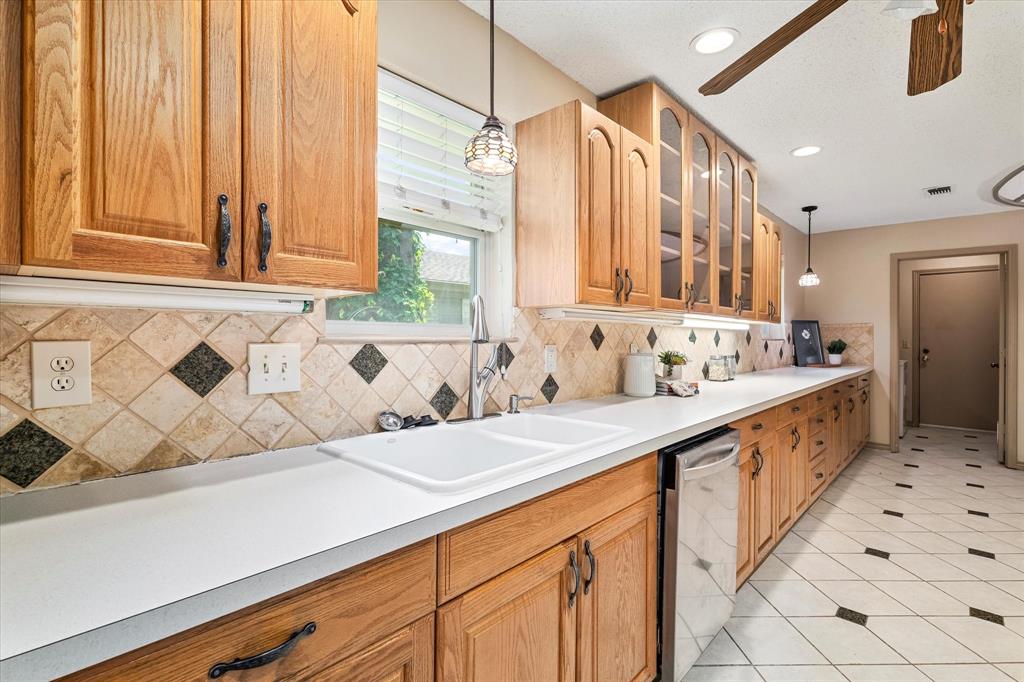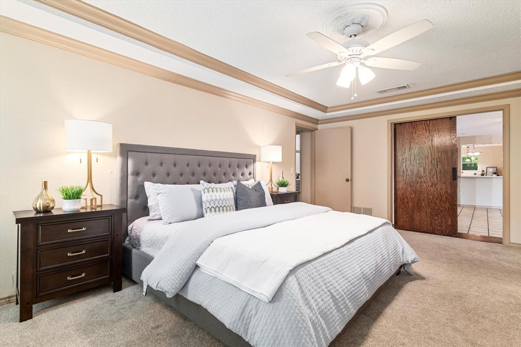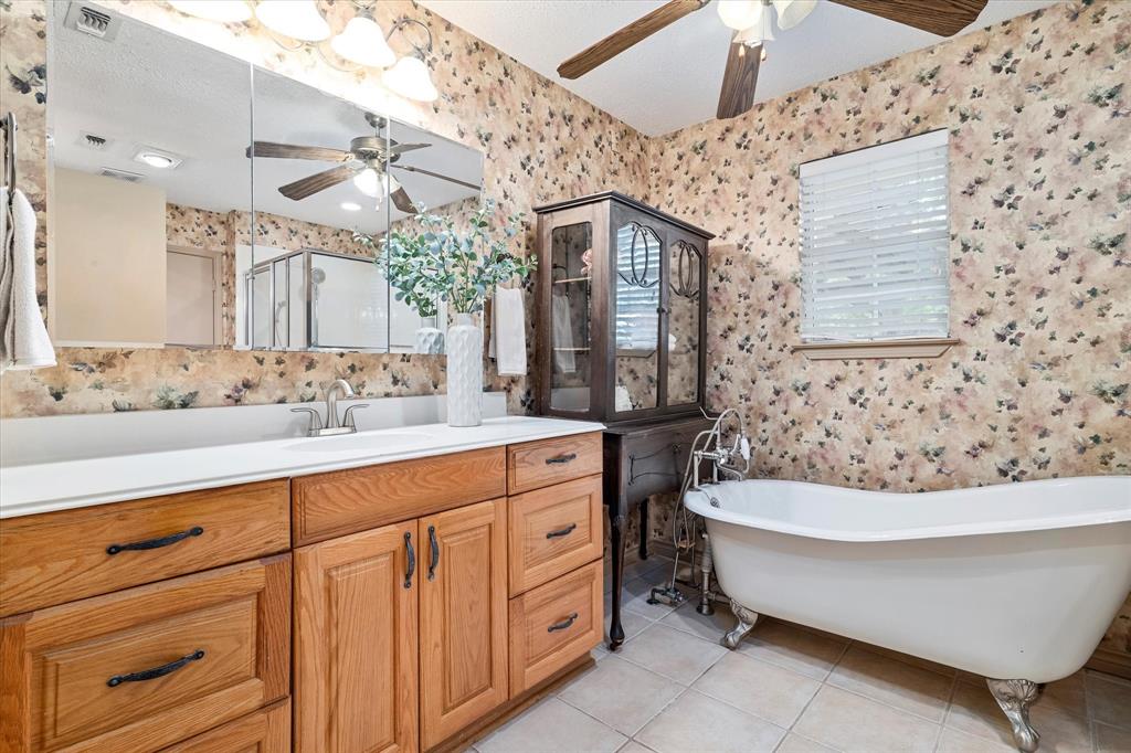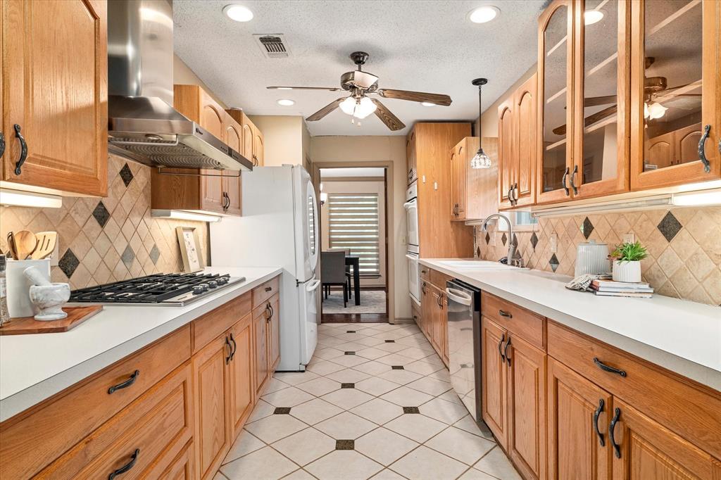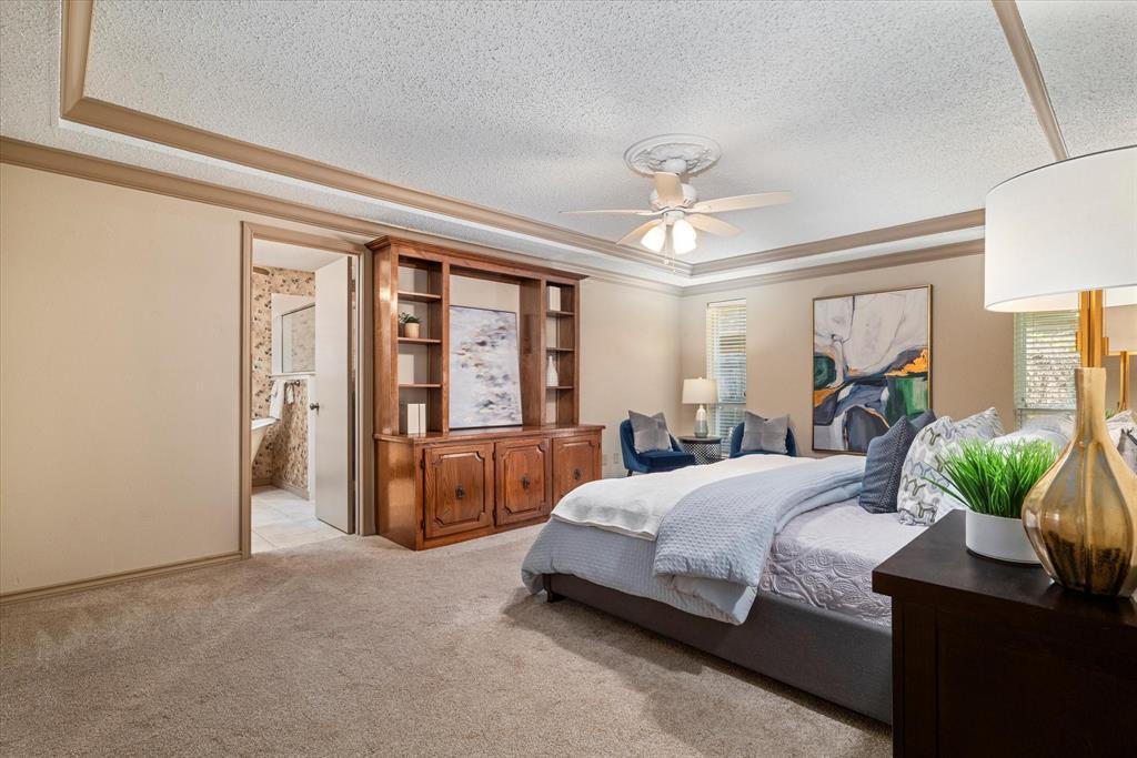 Welcome to this beautifully landscaped brick home offering exceptional curb appeal, thoughtfully designed layout. Prime location with no HOA provides easy access to top-rated schools, shopping, dining, and recreational facilities, making it a truly exceptional find with over $40k of improvements. Nestled in a quiet, mature neighborhood across from a scenic greenbelt, this home blends classic elegance with modern comforts, just minutes from Highways 75 and 190 for a easy commute and close to dining, shopping, and entertainment. Step through the striking double iron and glass front doors into a space with natural light and rich in character. Gorgeous wood flooring guides you into the formal dining room, complete with charming bow windows and custom built-in cabinets. The sophisticated galley kitchen features an abundance of beautiful cabinetry, natural stone backsplash, and under-cabinet lighting, all seamlessly connected to a cozy breakfast nook with a pass-through to the spacious family or game room. The heart of the home is the expansive living room, showcasing vaulted, wood-beamed ceilings, a wall of custom built-ins, and a timeless brick fireplace, a perfect place to unwind. The oversized primary suite is a true retreat, featuring tray ceilings and an en-suite spa-like bath with a claw-foot soaking tub and separate shower. Each of the additional five bedrooms is generously sized, offering space and comfort for family, guests, or a home office. Recent upgrades include a full replacement of the cast iron plumbing system with new PVC, a new electrical panel with generator hookup capable of powering the entire home, and a new condenser fan motor and blade for the upstairs HVAC unit. Step outside to a fully fenced, private backyard oasis with a huge pergola-covered patio, ideal for outdoor dining or relaxing evenings under the stars. Schedule your private tour today!
