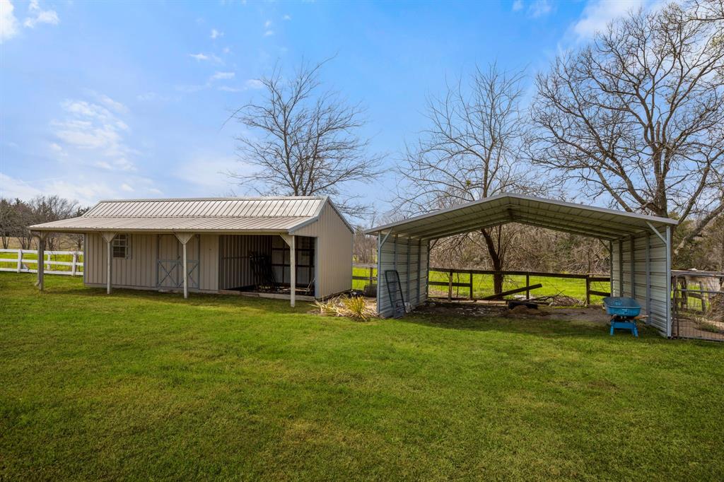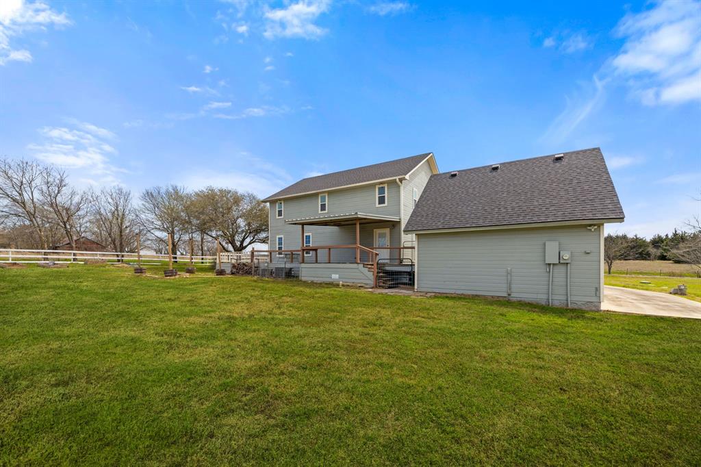 Enjoy the best of country living situated on 1 acre in unincorporated Ennis, TX! This well-maintained property features a detached two-car garage with a bonus space above, a small barn, and expansive front and back porches—perfect for relaxing or entertaining. No HOA. Inside, the home boasts a functional layout with spacious bedrooms and multiple living areas. The primary suite provides a private retreat, while additional bedrooms offer flexibility for guests, a home office, or extra living space. The open-concept design allows for easy entertaining, and large windows bring in natural light. Spray foam insulation in the rafters enhances energy efficiency, helping to keep the home comfortable year-round. Outside, the large lot provides endless opportunities for outdoor activities, gardening, or enjoying peaceful Texas sunsets. The detached garage includes a bonus space above, offering additional potential to suit your needs. The small barn adds even more flexibility. Located just minutes from shopping, dining, and major roadways but outside city limits, this property offers rural charm with modern convenience. Schedule a showing today!