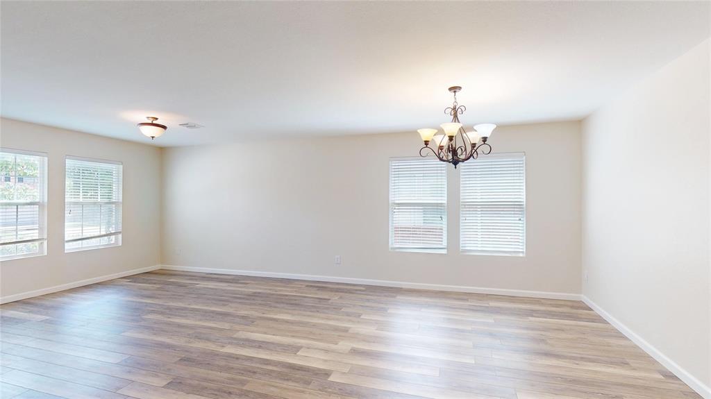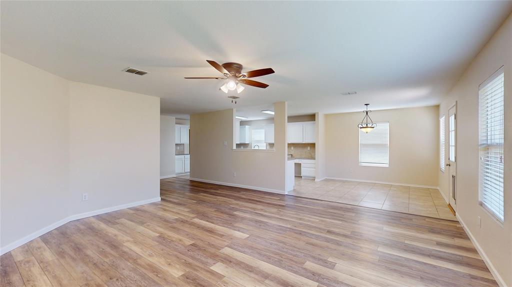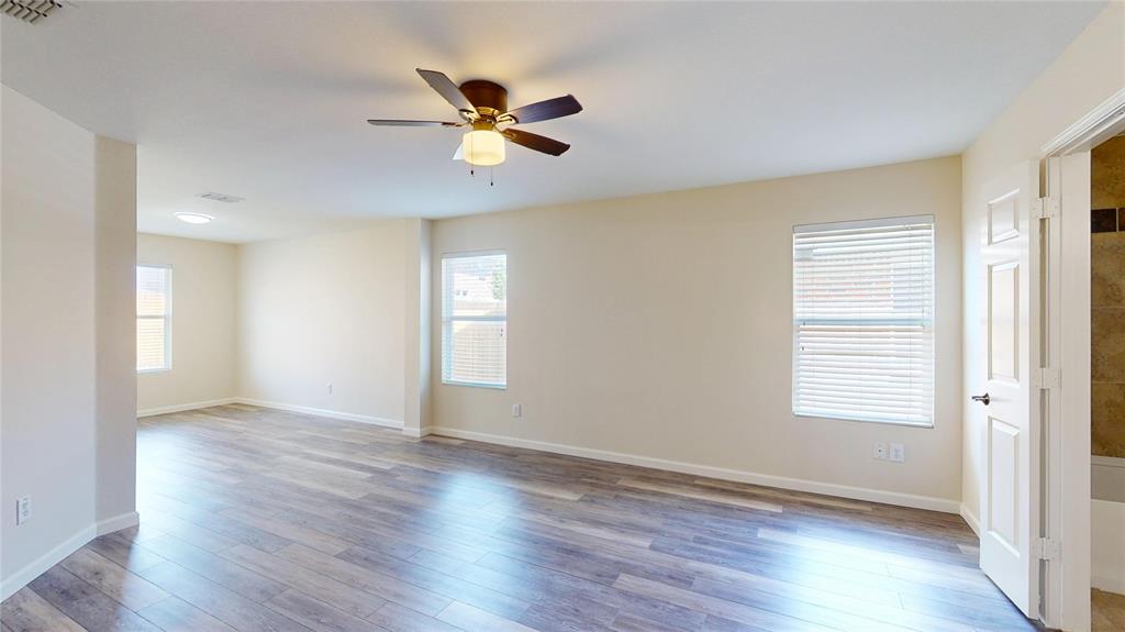 Beautifully updated 2-story in Harriet Creek Ranch with brick elevation and mature trees! Inside you will find 5 bedrooms, 3.5 baths, formal living and dining areas just off the entry, upstairs game room, and 2-car garage! Upgrades and amenities include luxury vinyl flooring throughout main living areas, neutral paint tones, split bedrooms for added privacy, TONS of living space, plush carpeting on entire second level, and MORE! Gourmet kitchen boasts granite countertops with a ceramic backsplash, bright white cabinetry, stainless appliances, electric cooktop, and eat-in area. Primary retreat offers a 12x9 sitting area that makes a terrific home office if needed, and a luxurious ensuite bath with a dual sink vanity, garden tub with separate shower, and generously-sized walk-in closet. Four large bedrooms with walk-in closets, 2 full baths, and a huge game room round out the second level of the home. Private backyard is complete with an open patio area perfect for entertaining!