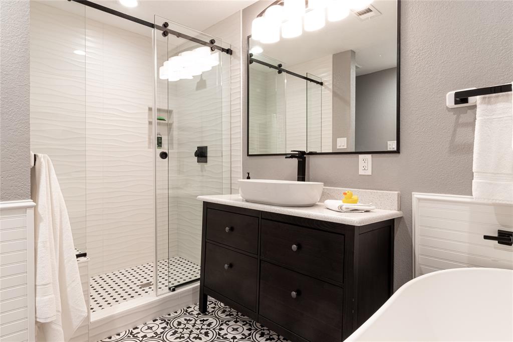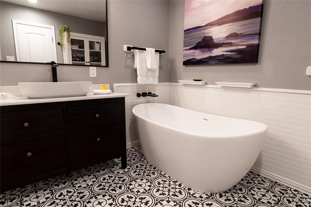 The updated kitchen, remodeled in 2016, features sleek quartz countertops, quality finishes, ample cabinet space, and a functional layout that makes everyday living and entertaining a breeze. The spa-inspired primary bathroom, fully renovated in 2023, includes a large walk-in shower and a soaking tub, offering a luxurious retreat at the end of the day.