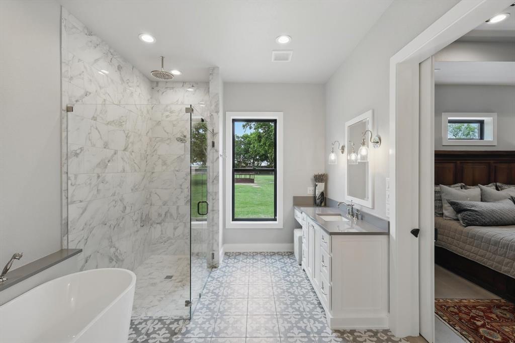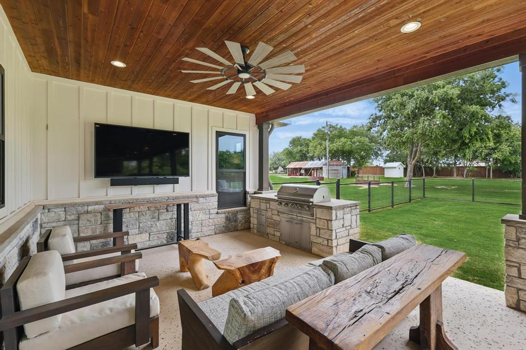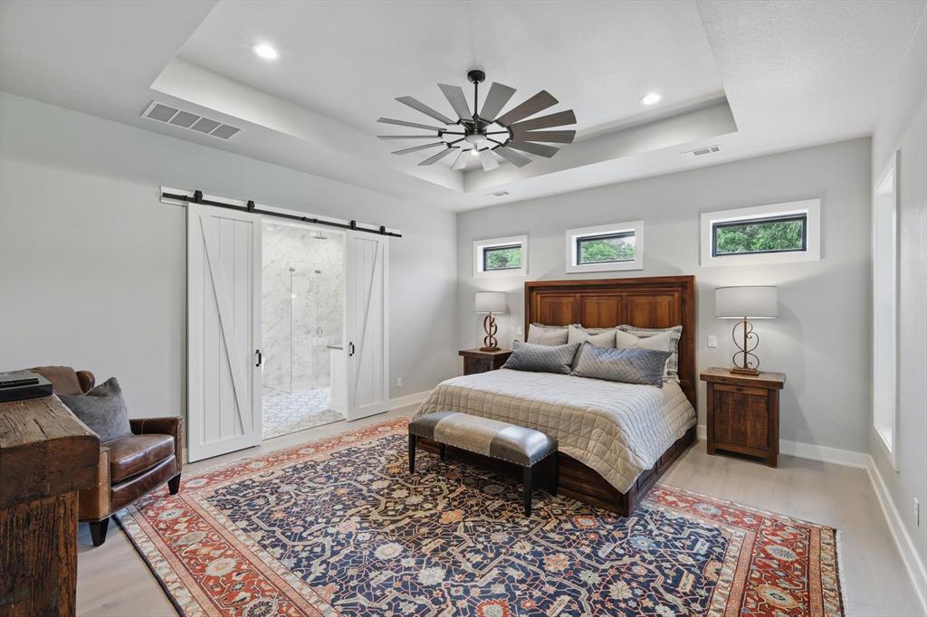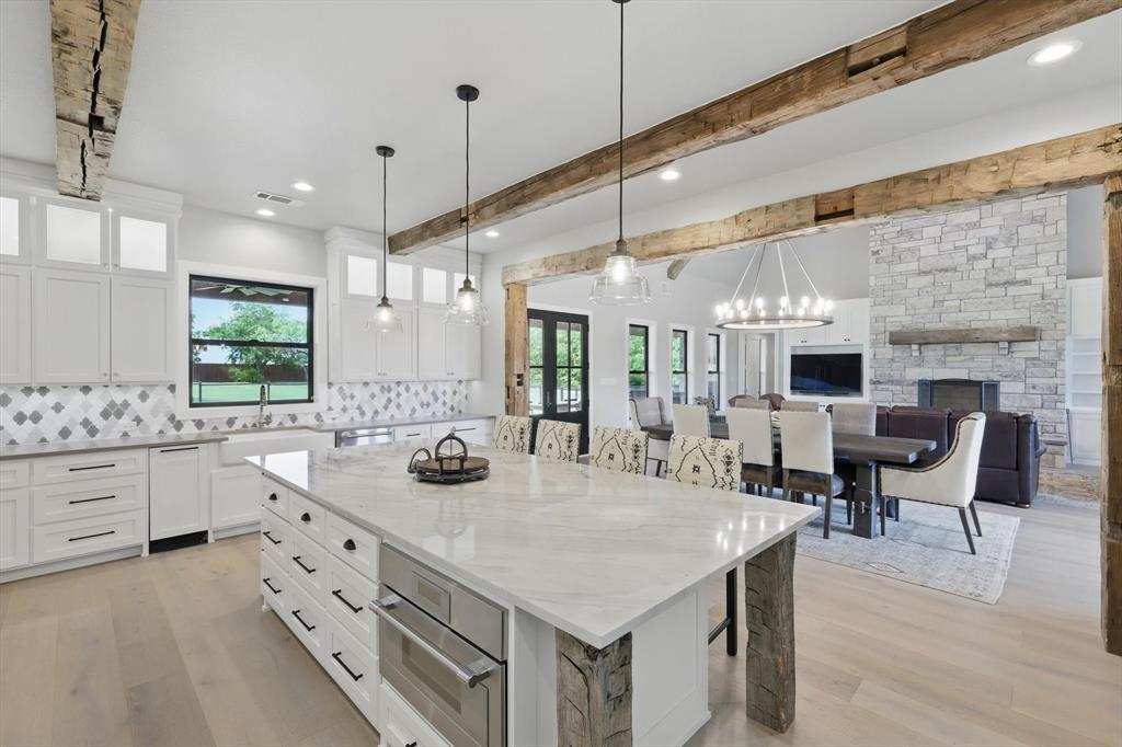 Designed with both beauty and resilience in mind, the home features 4 spacious bedrooms, Anderson Low-E windows, an insulated cedar garage door, and a Generac whole-house backup generator for peace of mind. Step into the heart of the home—a gourmet kitchen outfitted with professional-grade Thermador appliances, custom cabinetry, 10-foot quartz island, and an open floor plan that flows effortlessly into the living and dining areas. Retreat to the expansive master suite, where you'll find a spa-inspired en-suite bath and ample space to unwind. Outside, enjoy secure access through an electric front entry gate, and take in the view of the charming nostalgic barn and silo that add character and history to the property.
