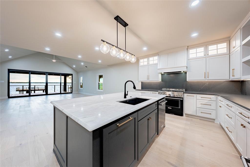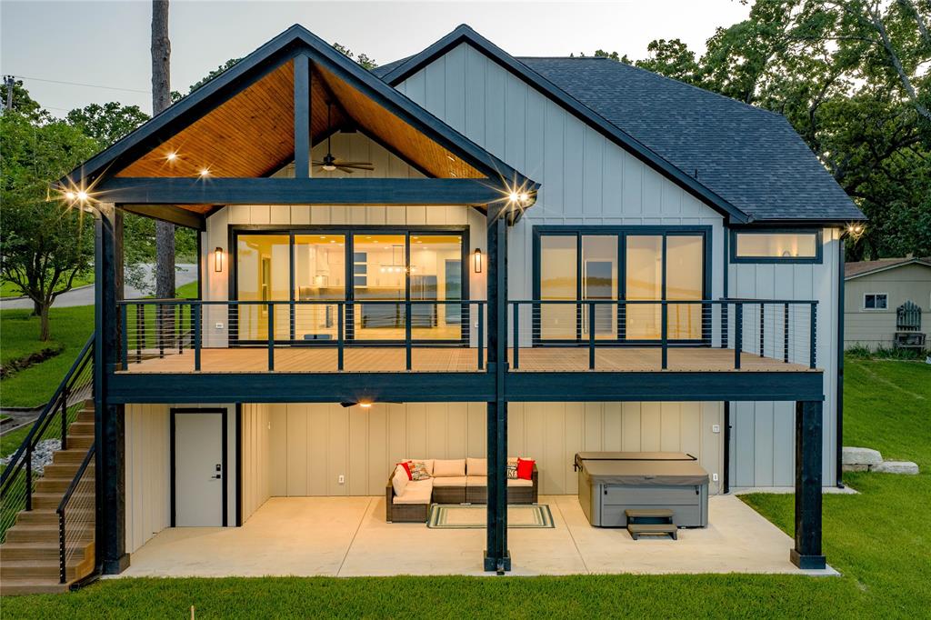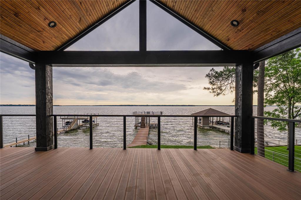Experience the perfect blend of comfort and elegance in this stunning home, designed for both relaxation and entertaining. Wood flooring flows throughout, leading you into a dream kitchen featuring gas cooking, a large island bar, quartz countertops, an ice maker, and a wonderful butlers pantry with a sink, microwave, and beverage center. The primary suite is a true retreat with glass doors that open directly to a lakeside deck. The spa-inspired bath offers a soaking tub, a rain head, and a body sprayer in the expansive shower. Hosting is a breeze with three spacious bedrooms and two large guest suites boasting double vanities. A versatile flex room can serve as a fifth bedroom, office or media space. Enjoy year-round living with a fabulous covered porch and open living area overlooking wide open water. An open deck plus a lower-level covered space with hot tub create the perfect setting for relaxing or entertaining family and friends. A double boathouse with an upper deck sits on deep water, offering both convenience and stunning views. Located in a VRBO-friendly area, this property is ideal as a primary residence, vacation home, or investment opportunity.