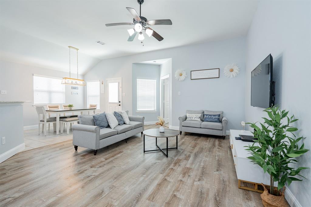 Discover the perfect blend of comfort, space, and convenience in this inviting 3-bedroom, 2-bathroom home nestled in a peaceful, family-friendly neighborhood. Thoughtfully designed for modern living, this home features a dedicated office—ideal for remote work, homework, or creative pursuits. The bright and airy living area offers plenty of space for relaxing and entertaining, while the kitchen is equipped with updated appliances, and a functional layout for everyday ease. The primary suite includes a private bathroom and generous closet space. Two additional bedrooms offer flexibility for guests or growing families. Step outside to enjoy a private backyard—perfect for kids, pets, or weekend gatherings. This adorable home is located on a quiet street with easy access to parks, schools, shopping, and dining. This home is a fantastic opportunity for anyone looking to settle into a welcoming community!