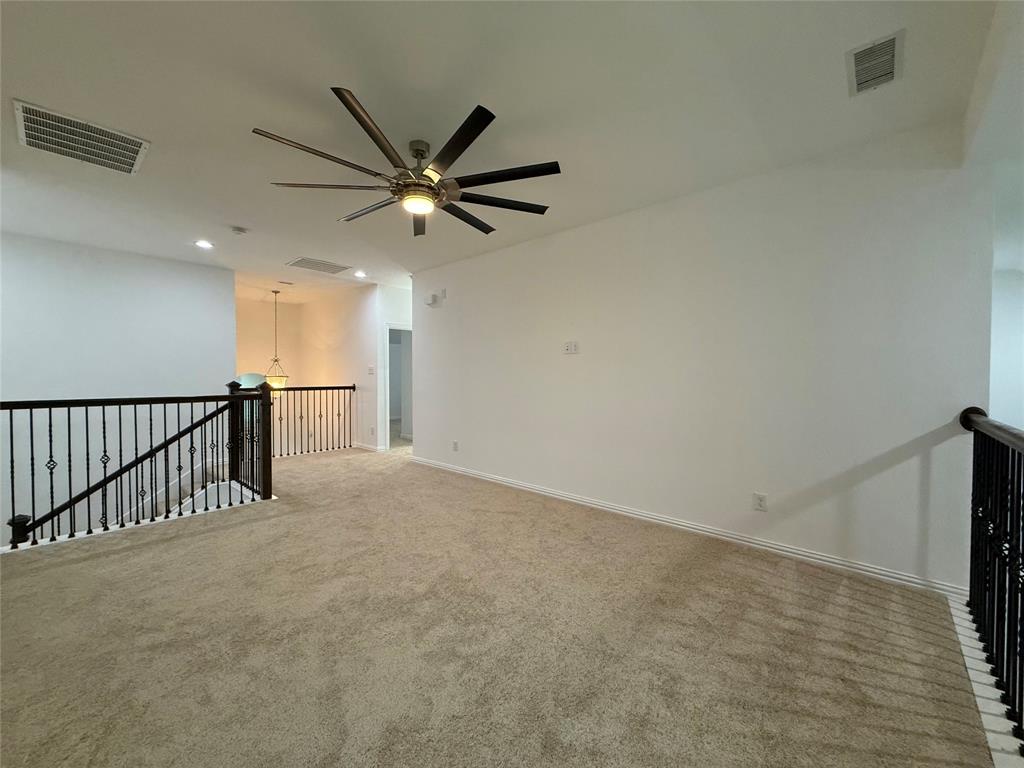 Enchanting designer home from the entrance to the high ceilings with two inside balconies on upstairs loft that overlooks the bottom floor. NEVER HAVE BACK NEIGHBORS! Full-size closed door media room flowing into upstairs loft with window seat. Speakeasy wood & iron front door to match the wraparound iron stair rails. NEW PAINT, NEW FLOORING, NEW FIXTURES, Front downstairs room to be used as bed or office located next to closed door laundry room & single guest bath. Every hallway offers a full-size closet for extra storage. Primary is downstairs featuring a double sink & vanity, deep stand alone tub, separate shower with see through glass view, large closet. Kitchen features Gas stove, Quartz, Tall Glass cabinet facings, lots of cabinet storage, overlooking dining. Living offers tall fireplace & large fan. Beds upstairs offer space & quick access to bathroom. All areas are away from one another but together. Backyard is deep and wide perfect for pool or exterior additions! Garage is large with epoxy flooring. Surrounding longtime neighbors maintain their yards with luxury landscaping & property improvements. Easy access in and out of neighborhood! Perfect location to hit everything Forney, Rockwall-Heath, Lake Ray Hubbard! Community amenities include: Pool, Splash pool, Hike-bike trails, Volleyball & Basketball Courts, Dog park, Fishing. LENDER CREDIT TO CLOSE AVAILABLE 1% of LOAN AMOUNT TO BE GIVEN AS CLOSING INCENTIVE.