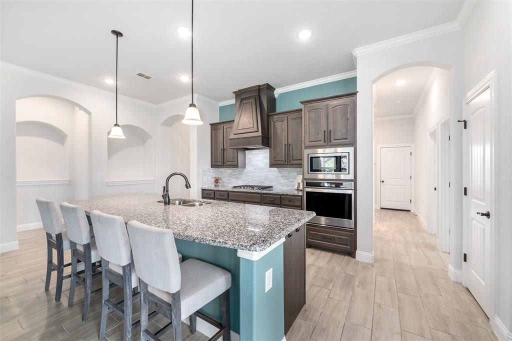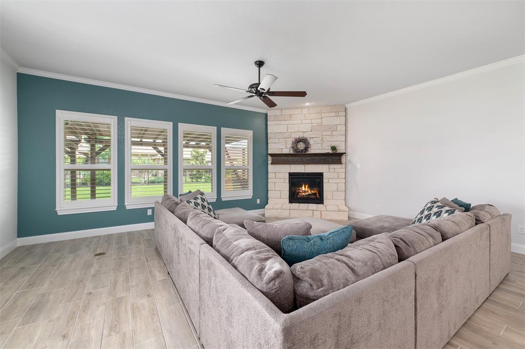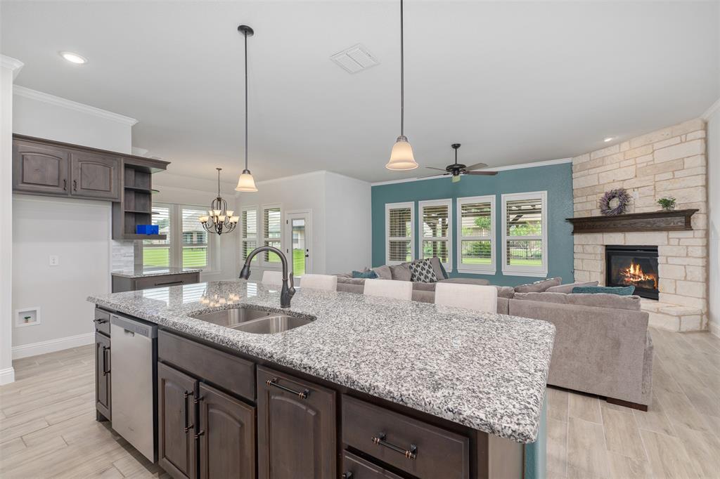 UPDATED PRICE! MOTIVATED SELLER! Come and visit this great family home in a gated subdivision of Harbor Lakes, The Plantation at Harbor Lakes. This custom home boasts crown molding throughout, an ideal custom closet in the primary suite, plantation shutters throughout, a covered patio perfect for entertainment and an oversized lot. which provides a great opportunity to expand outdoor living areas. The chef's kitchen includes a gas cooktop, a huge island with ample room for bar seating, granite countertops and cabinets extending into the dining area. The primary suite is truly private. The large soaking tub, double vanities and awesome shower provide a relaxing spa-like feel and leads into the primary closet which has been customized to fill all your needs. The living area includes a gas fireplace to keep everyone cozy during those cool evenings. The two-car garage has an upper shelf for storage around the perimeter, and an epoxy floor. Living in Harbor Lakes provides easy access to the square, shopping and schools. The neighborhood is perfect for walking, biking, or just tooling around on your golf cart. Schedule a showing today to view this great property!