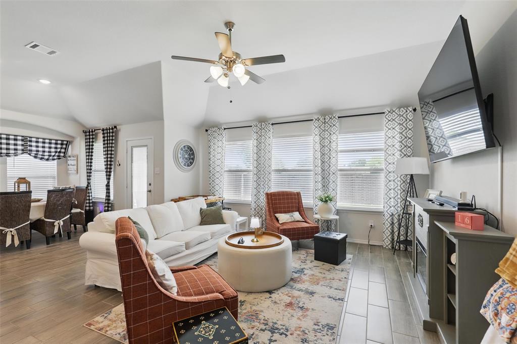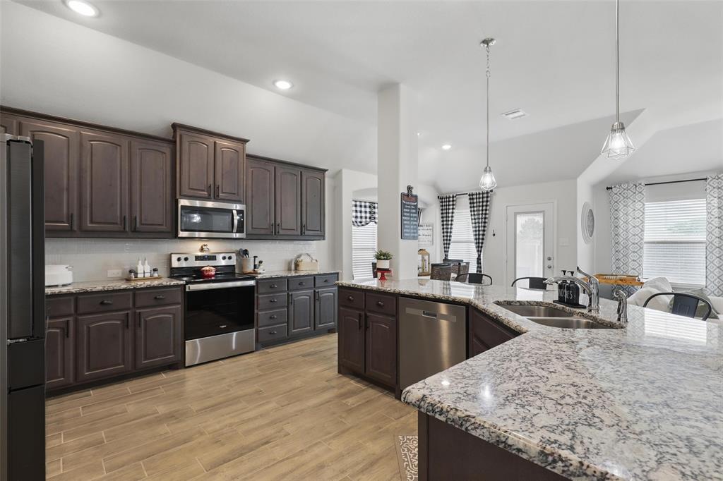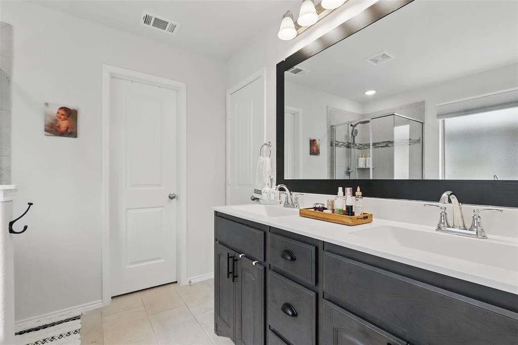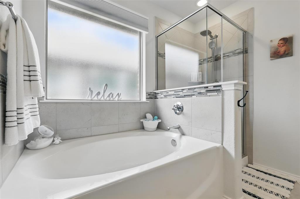 Inside, you'll find a thoughtfully designed open-concept floor plan with a seamless flow between the living, dining, and kitchen areas—perfect for both everyday living and entertaining guests. The living space is anchored by large windows that flood the room with natural light, highlighting the neutral tones and giving the entire home a bright, airy feel. The kitchen is both stylish and functional, featuring sleek countertops, ample cabinetry, and modern appliances—ready for home-cooked meals and casual gatherings alike. Generously sized primary suite, a peaceful retreat with natural light, and an ensuite bath offering a walk-in shower, soaking tub, and double vanities. Additional bedrooms provide flexibility for family, guests, or a home office, and all are complemented by spacious closets and thoughtful finishes. Whether you're enjoying a quiet evening on the covered patio or hosting a summer barbecue, the expansive backyard offers privacy and endless possibilities. This home combines functionality, style, and serenity—perfect for anyone looking to enjoy the comforts of suburban living without compromising on quality.