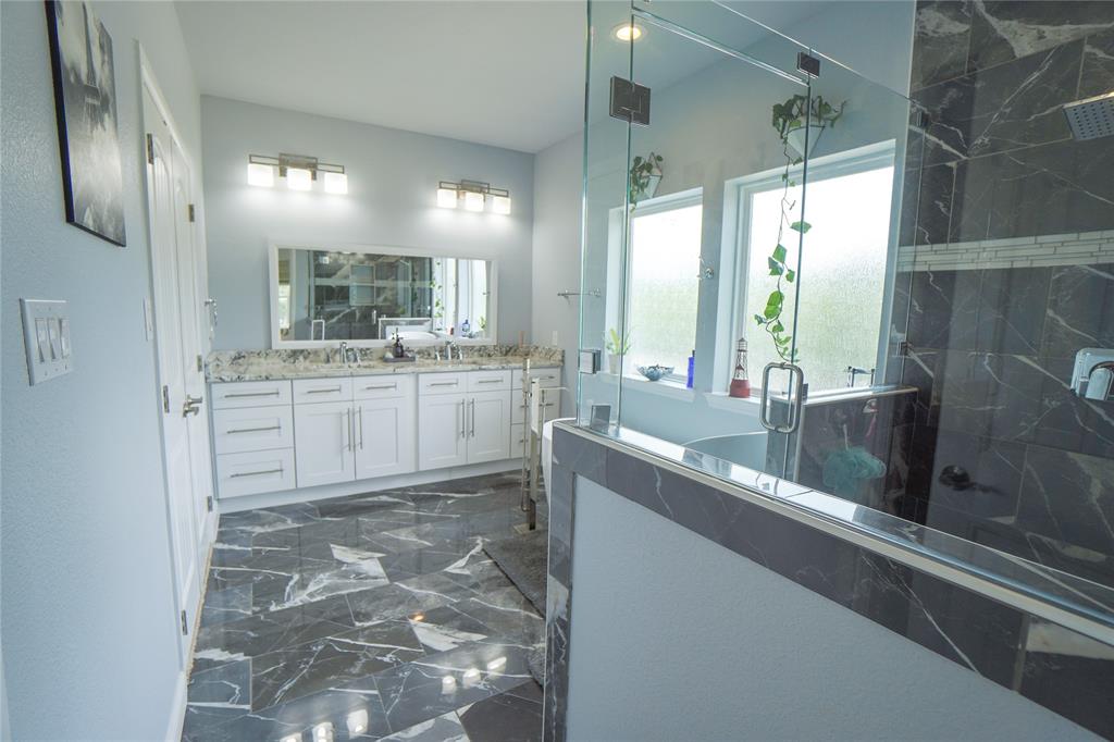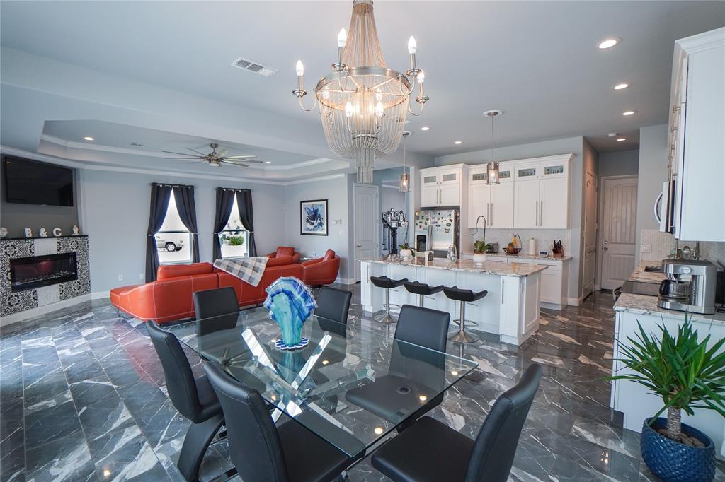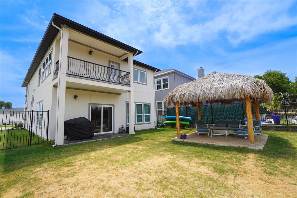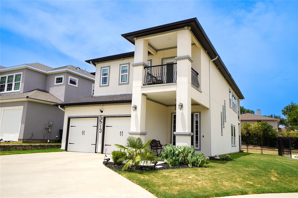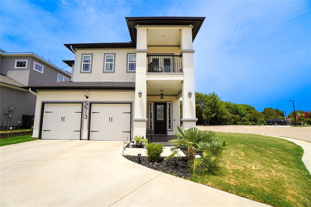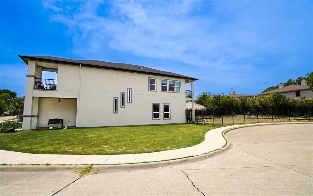 Discover this stunning 4-bedroom, 2.5-bath home with beautiful lake views, perfectly situated on an oversized corner lot in a quiet cul-de-sac within the sought-after Lake Terrace community. Meticulously maintained, this home offers a spacious open-concept layout, highlighted by a decorative fireplace that serves as the focal point of the living area. The gorgeous kitchen features on-trend finishes, stainless steel appliances, and seamless flow into the dining and main living space—ideal for everyday living and entertaining. Porcelain tile flooring extends throughout the main and wet areas, adding durability and style. Upstairs, the luxurious owner's suite features its own private balcony and a spa-like en suite bath with a modern soaking tub, walk-in shower, and dual vanities. Three additional bedrooms provide ample space for family or guests—two share a convenient Jack and Jill bathroom, while the third enjoys access to another private balcony. A powder bath is located on the main level for added convenience. Step outside to a large backyard oasis, complete with a cabana and plenty of room for outdoor entertaining. Located just minutes from I-30, The Harbor, and Bass Pro Shops, this home also offers access to Garland ISD's choice of schools. Homes like this don’t last long—schedule your private tour today!