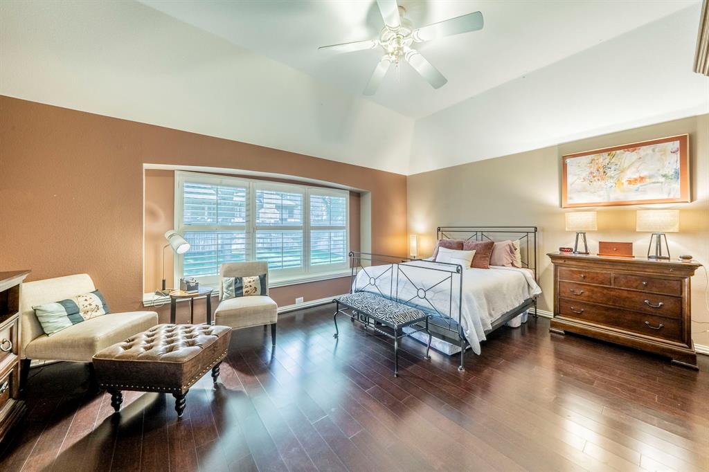 Welcome to this beautifully maintained single-story home in Grand Prairie. Step through the inviting foyer into an open-concept layout filled with natural light, highlighted by elegant plantation shutters, updated lighting, and stylish engineered wood flooring throughout. The expansive living room features a wall of windows overlooking the backyard, creating a bright and welcoming atmosphere.