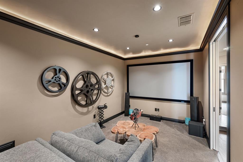The entire second floor is dedicated to a luxurious primary suite, complete with a spa-inspired bath, oversized bedroom, and a custom 23’ x 10’ boutique-style closet. The third-floor media room offers flexible space for entertainment or relaxation along with open flex space and two bedrooms