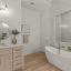 The master suite is a private oasis with cathedral ceilings, his-and-hers vanities, spa-inspired finishes, and custom carpentry — a retreat built for relaxation and style.