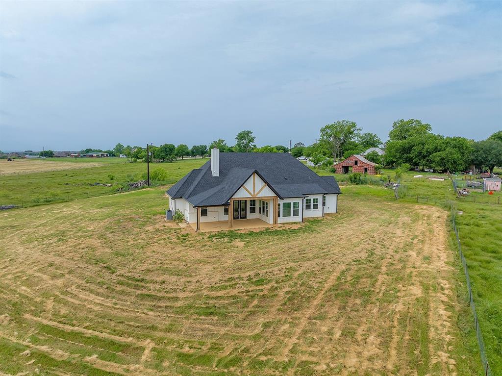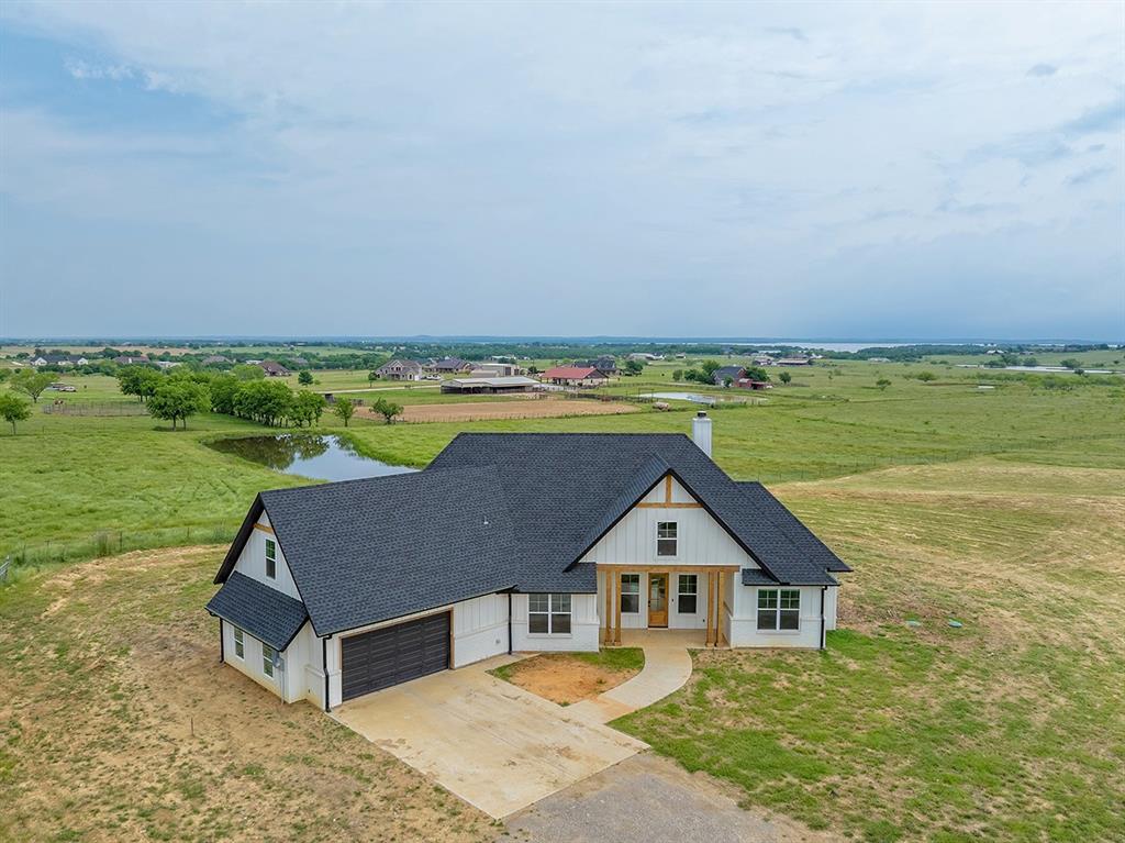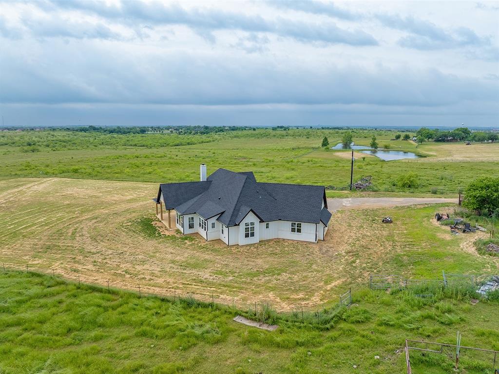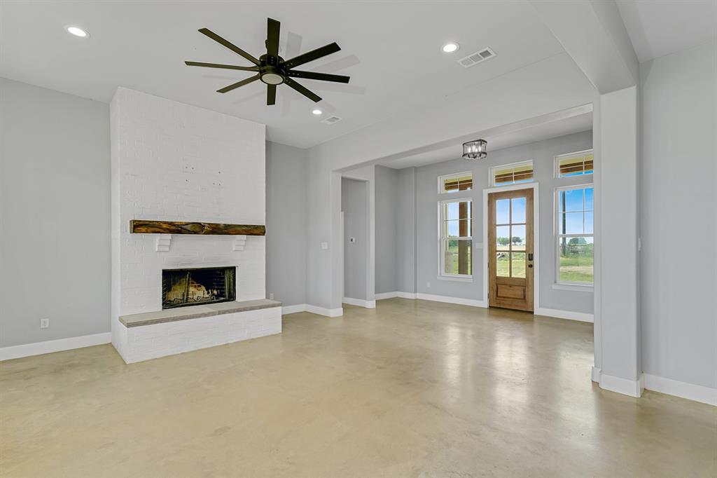 Welcome to this beautifully designed modern farmhouse nestled on 2 expansive acres, offering the perfect blend of comfort, function, and style. With 4 spacious bedrooms, 3 full bathrooms, and a versatile bonus room upstairs featuring wood-look laminate flooring, this home is ideal for families of all sizes. The first level boasts stained concrete floors throughout, creating a seamless and durable living space. The open-concept layout connects the kitchen, dining, and living areas, with a stunning wood-burning fireplace anchoring the living room. The kitchen is a chef's dream, featuring sleek granite countertops, white shaker-style cabinets, subway tile backsplash, and a large island perfect for gathering. Enjoy plenty of natural light from the abundant windows throughout the home. The master suite, laundry room, and one secondary bedroom and bathroom are privately tucked behind the kitchen, while the other two bedrooms are located on the opposite side of the home with a full bathroom to share is situated between them — an ideal setup for privacy. Step outside to the covered back porch, perfect for entertaining or enjoying peaceful views of the surrounding landscape. Whether you're hosting a barbecue or sipping your morning coffee, you'll love the outdoor space this property provides.