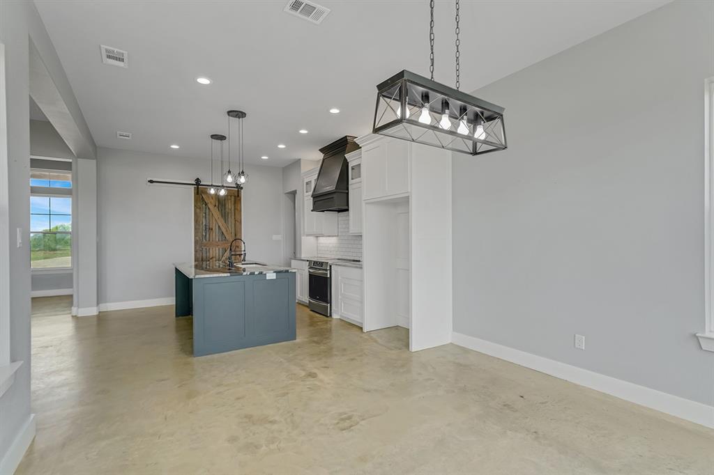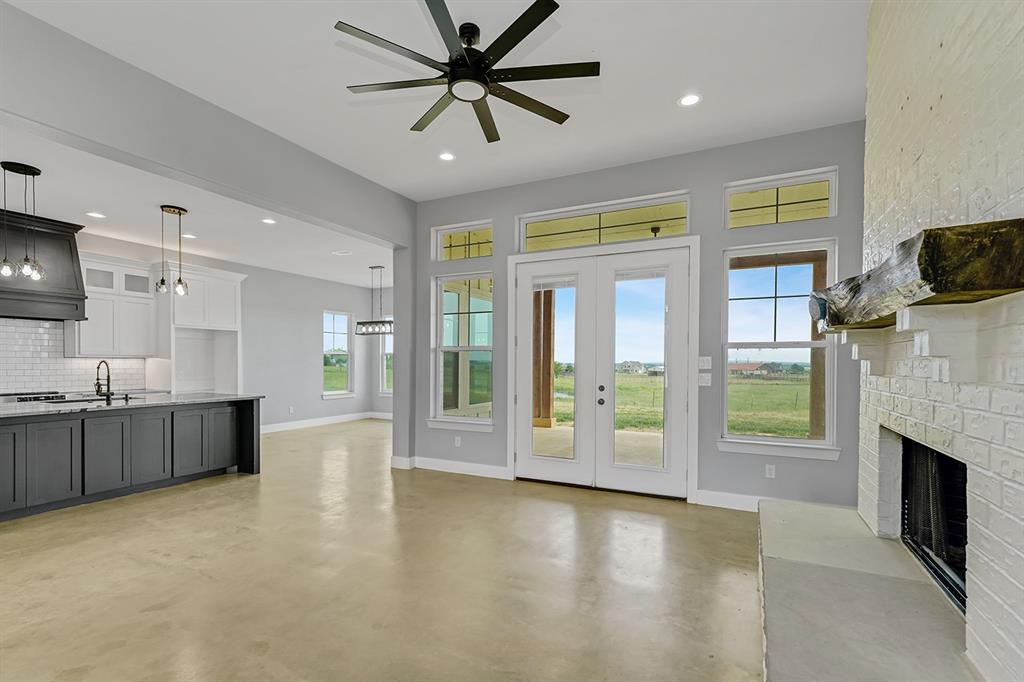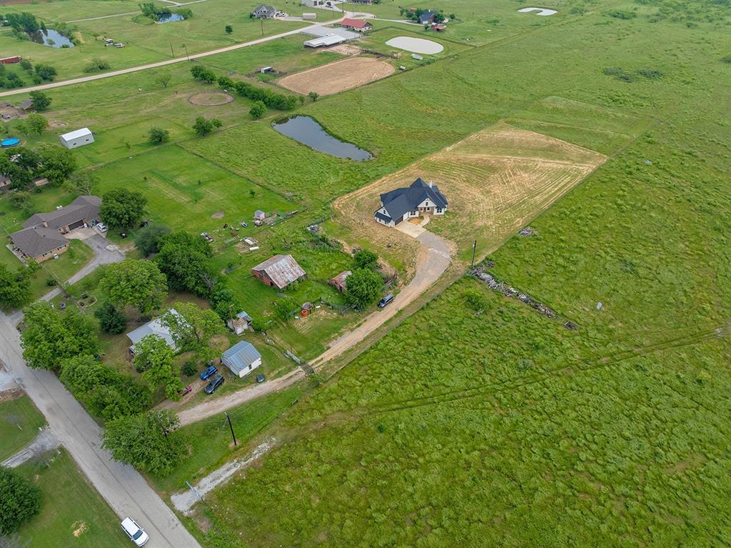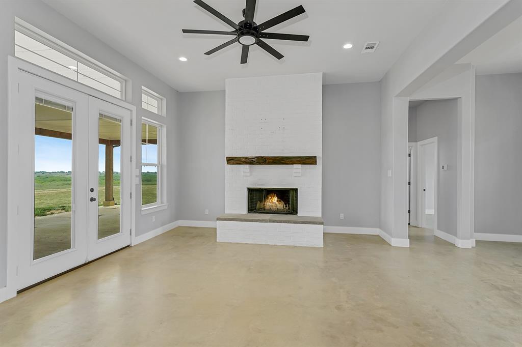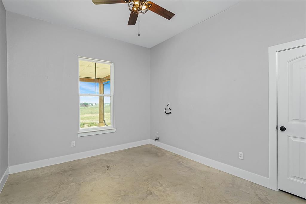 Welcome to this beautifully designed modern farmhouse nestled on 2 expansive acres, offering the perfect blend of comfort, function, and style. With 4 spacious bedrooms, 3 full bathrooms, and a versatile bonus room upstairs featuring wood-look laminate flooring, this home is ideal for families of all sizes. The first level boasts stained concrete floors throughout, creating a seamless and durable living space. The open-concept layout connects the kitchen, dining, and living areas, with a stunning wood-burning fireplace anchoring the living room. The kitchen is a chef's dream, featuring sleek granite countertops, white shaker-style cabinets, subway tile backsplash, and a large island perfect for gathering. Enjoy plenty of natural light from the abundant windows throughout the home. The master suite, laundry room, and one secondary bedroom and bathroom are privately tucked behind the kitchen, while the other two bedrooms are located on the opposite side of the home with a full bathroom to share is situated between them — an ideal setup for privacy. Step outside to the covered back porch, perfect for entertaining or enjoying peaceful views of the surrounding landscape. Whether you're hosting a barbecue or sipping your morning coffee, you'll love the outdoor space this property provides.