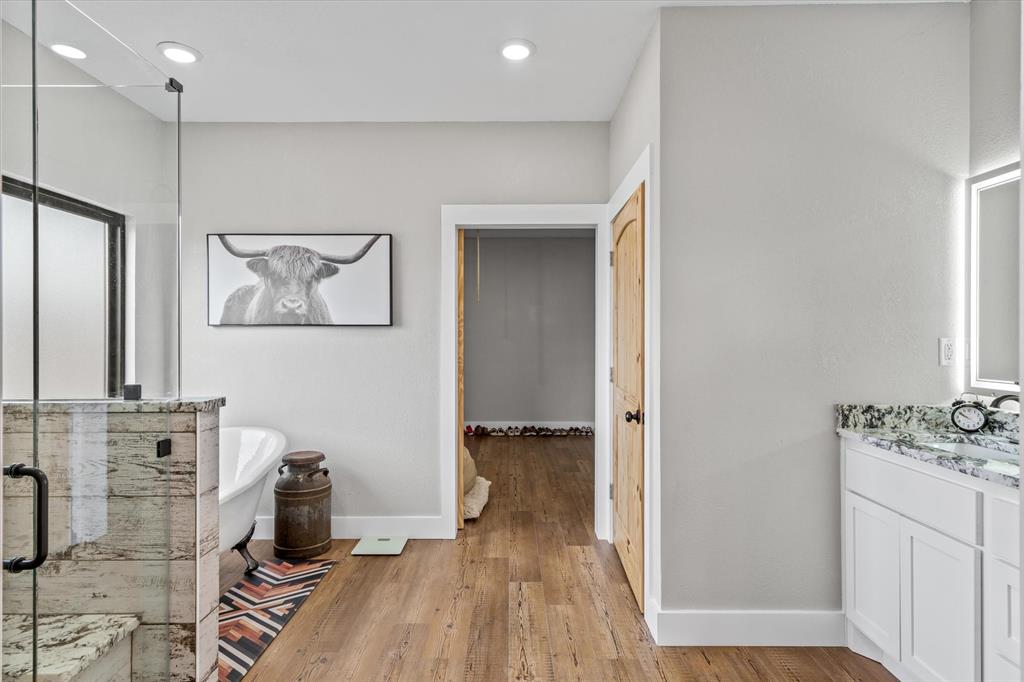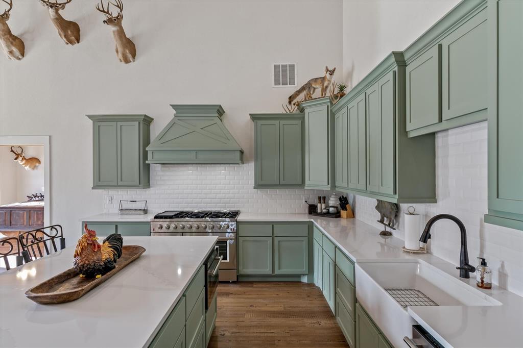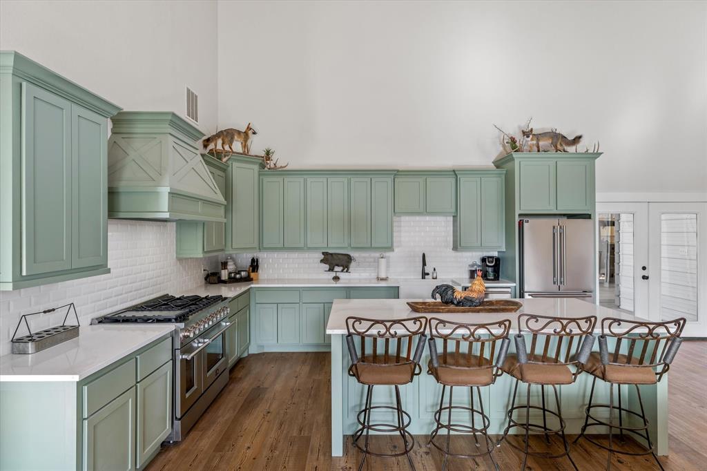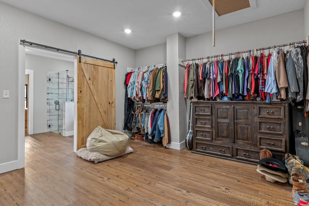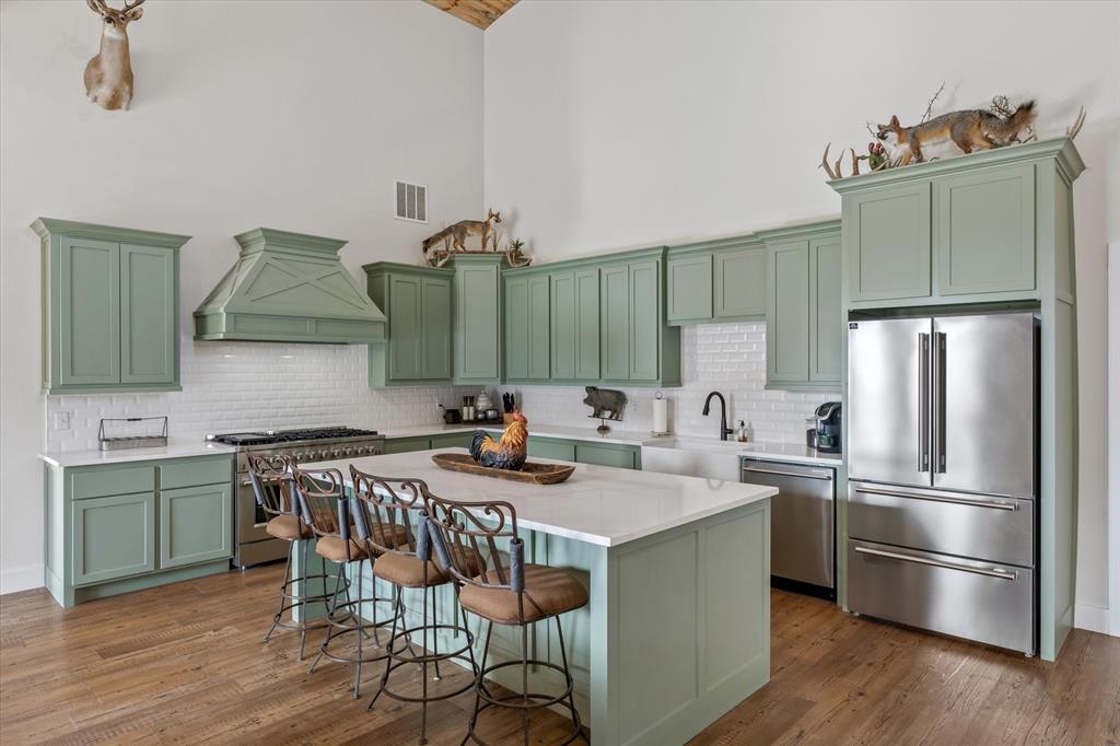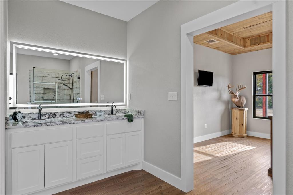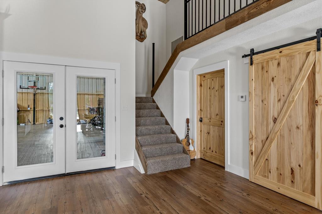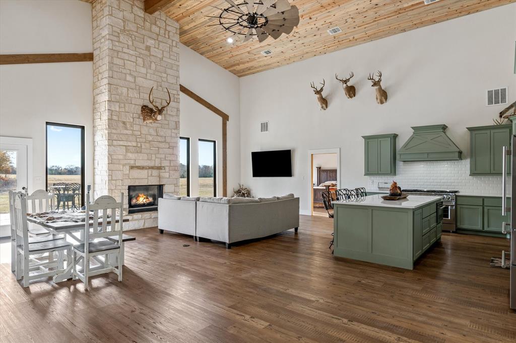 The Edgewood ISD gem you've been waiting for! Soaring ceilings and expansive windows to view the deer that walk right up to your covered back porch. Already flat screen wired and ready for your lazy evenings on the back porch. Inside you will enjoy luxury details which include Blue Ponderosa Pine tongue and groove ceilings, a gas fireplace, CHEF'S KITCHEN featuring commercial grade stainless steel appliances that ALL STAY, drawer microwave in the oversized island, impressive 8 burner, and double oven gas range. The efficiency was well thought out with the upstairs having it's own separate HVAC unit and all gas appliances including a tankless water heater. The home and shop are spray-foamed with an interior dehumidifier. Every room in this house is OVERSIZED, primary bedroom closet is 13x14!Primary suite is sequestered and has an ensuite bathroom which includes a separate glass enclosed walk in shower, CLAWFOOT TUB, and dimmable, fogless LED mirror on the double vanity, and a separate toilet room. There are two bedrooms and a full bath upstairs and one more downstairs bedroom overlooking the wildlife out back on level 1. Separated by the large laundry room with ample storage, the downstairs office can be used as 5th bedroom and has it's own exterior door into the shop. Attached 2000 sq. ft. shop with three 14-ft doors on automatic openers, paved roads, insulated shop, additional covered parking outside the shop doors with hot water on outdoor water faucet, means your truck never has to be dirty again. Enjoy all of the benefits of peaceful country living without the mess. Efficient, stylish, and move-in ready! Furniture can be purchased. Additional land available from another seller not related to this sale.