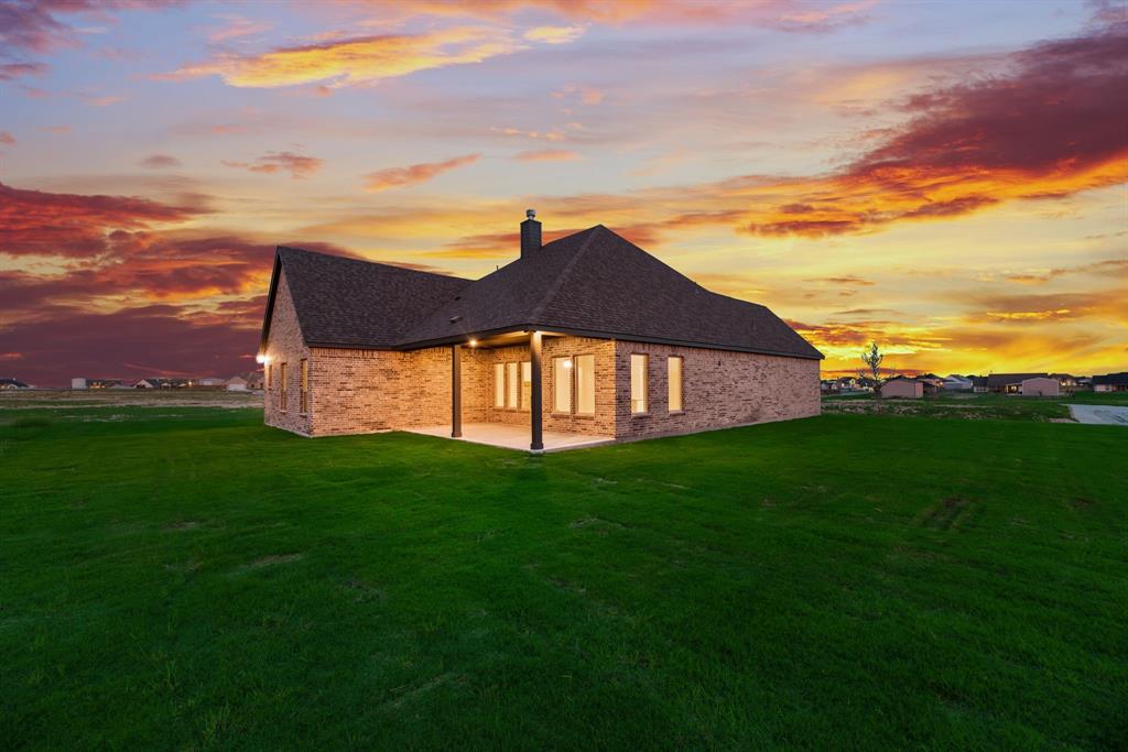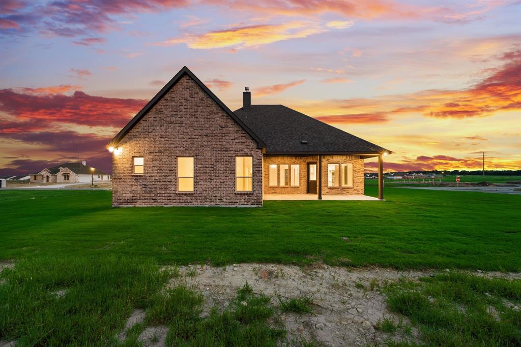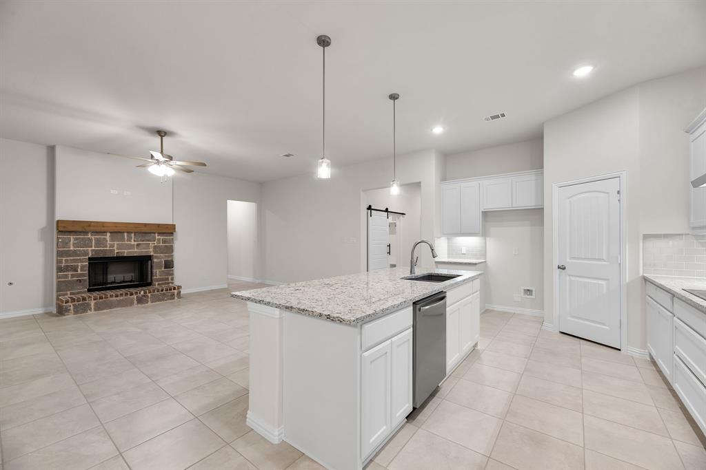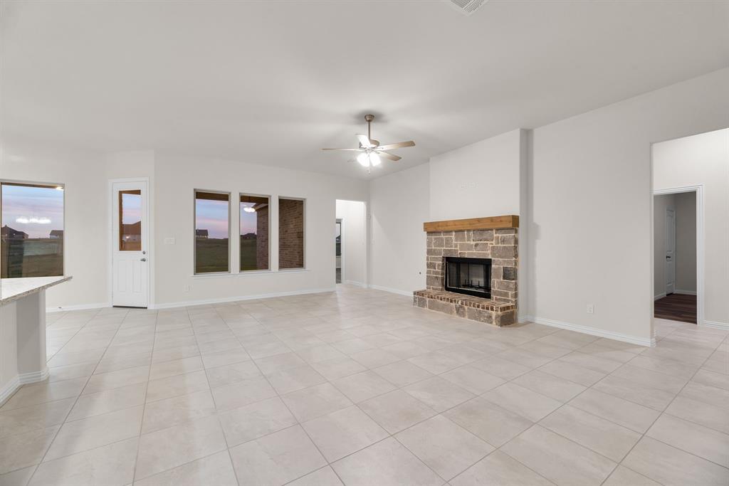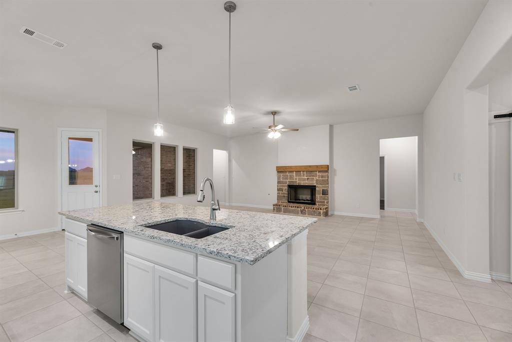 ONE OF A KIND! This Verbena floor plan was built with some custom features including: FULL BRICK, GAS availability, Extended shower in primary bathroom, DOUBLE OVEN, NO CARPET, Laundry room sink, oversized homesite. So much to see! With four bedrooms, three bathrooms, and a flex room, this plan boasts just over 2,400 square feet of functional living space. Upon entering the home off the front porch, you’re welcomed by an inviting foyer. Immediately to the left is a hallway with a bedroom, walk-in closet and full bathroom, as well as a linen closet. Across the foyer is a flex room, perfect for a home office, formal dining room or whatever need your family has for the space. Past the foyer is the family entry, with storage space and mud bench, which leads to the laundry room and two car attached garage. Through the entrance, the home opens up to a large family room with a rock-brick fireplace with gas availability . Adjacent to the family room is a gourmet kitchen, equipped with DOUBLE OVEN OPTION, ample counter space and an oversized island. Finishing off this open-concept living area is a dining space which overlooks the covered back patio. The remainder of this one-story floor plan is just off the living space. A hall leads to two bedrooms with walk-in closets, another linen closet and a shared full bathroom. The back corner of the home offers privacy for the owner’s suite, featuring a massive walk-in closet and bathroom with a dual-sink vanity, EXTRA LARGE WALK IN SHOWER!