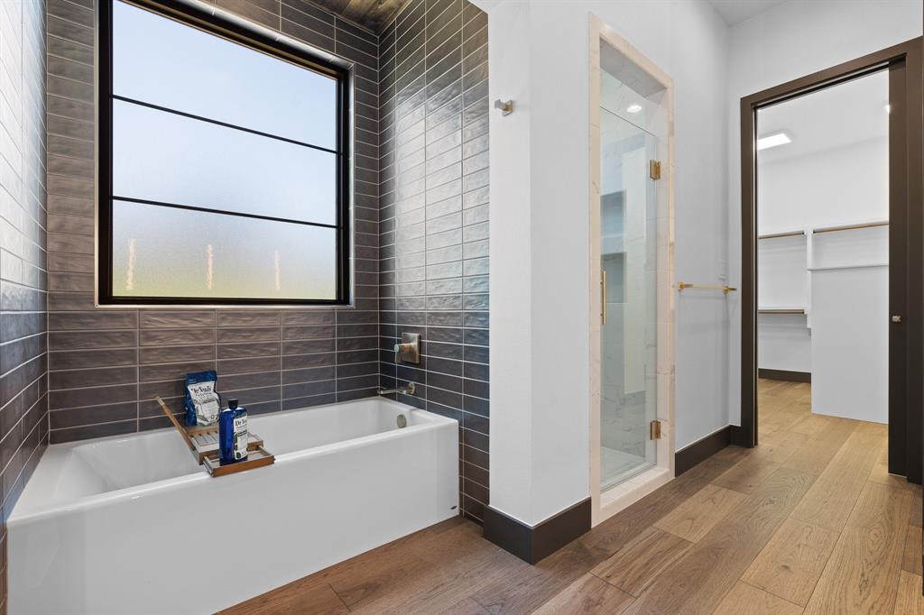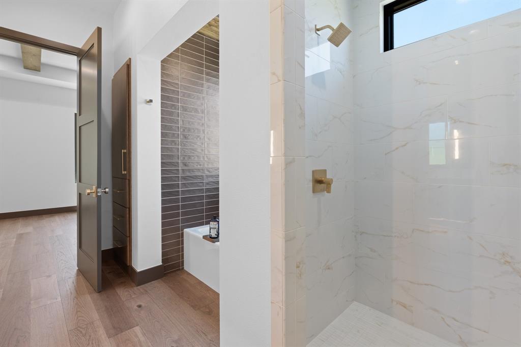 This home offers an open-concept design with soft close cabinets and draws, granite countertops, wood flooring, and large beams. It includes three bedrooms, two and a half bathrooms, and a covered back patio. The master suite boasts a cedar storage closet, a walk-in closet that will exceed expectations, dual sinks, separate tub and shower, built-in medicine cabinet, and shiplap walls in the laundry and half bath areas. Pella windows further enhance this home's architectural appeal, making it perfect for both entertaining and everyday living.