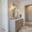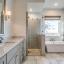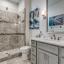 The secluded primary suite is a spa-like retreat with double-door entry, garden tub, glass-enclosed shower, dual vanities, and a generous walk-in closet.