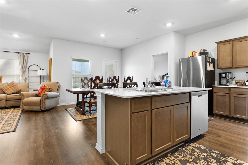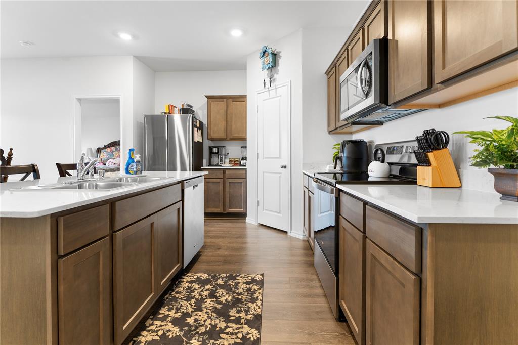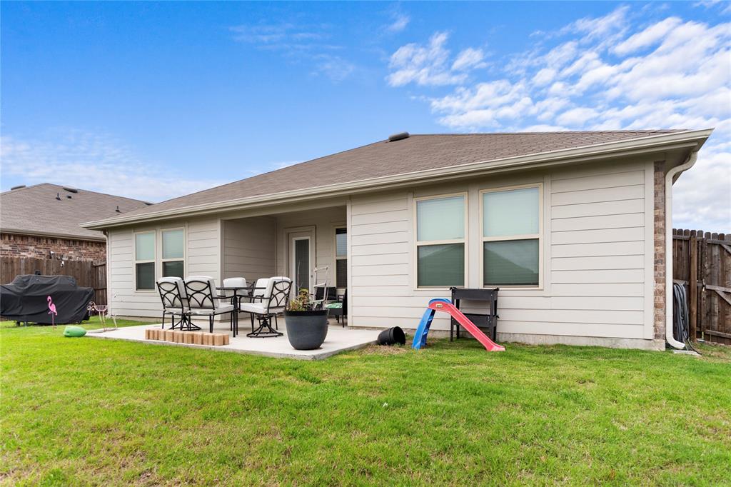 Charming, Parkside Beauty in Magnolia! 0% down payment. Step onto the welcoming covered front porch and into a home that feels like new in the highly desirable Magnolia community! This stunning home features a grand entryway with wood-look tile floors and soaring ceilings that create a spacious, airy feel from the moment you walk in. Located directly across from the community’s expansive park and sparkling pool, you’ll love the easy access to outdoor fun and relaxation. The open-concept layout seamlessly connects the kitchen, dining, and living areas—perfect for entertaining or cozy nights in. The generous primary suite is a true retreat, complete with built-in bathroom shelving and a huge walk-in closet you’ll adore. Step outside to your private backyard featuring a covered 6x10 patio plus an extended area to soak up the sun or host a BBQ.Don't miss the chance to call this beautifully maintained home yours!