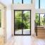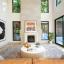 Expansive windows and three sets of sliding doors flood the interiors with natural light and open to the outdoors. Steel entry and balcony doors, soundproofed windows, and white oak hardwood floors throughout set the tone for quality and style. Two upstairs balconies provide serene tree-top views, while the main level showcases a soaring limestone fireplace and a spacious great room.