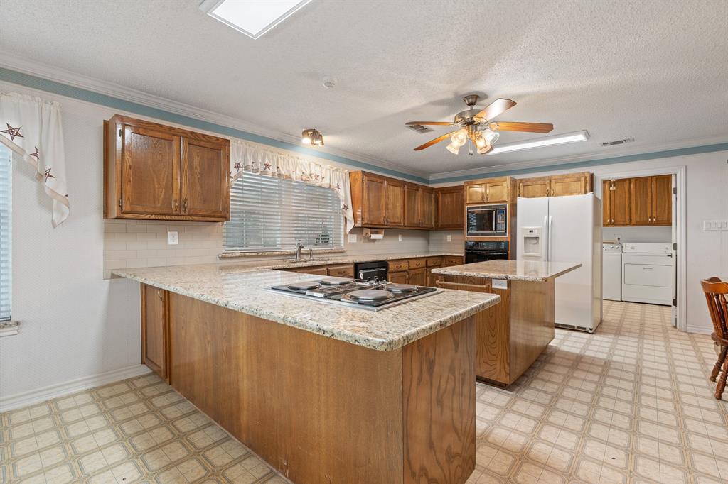 This stunning two-story home, situated on 1.36 acres atop a hill just south of Benbrook Lake, offers an abundance of features and opportunity. The property boasts four spacious bedrooms, two and a half bathrooms, expansive living and dining areas complete with a wet bar. The kitchen, utility room and butler's pantry areas are all outfitted with granite countertops. Recent updates include new windows throughout the home, which come with a warranty. Brand new carpet in all bedrooms.The HVAC system updated in 2019. The backyard offers breathtaking panoramic views two storage sheds within the gated yard, and a patio providing ample space for outdoor living and activities. With some updates, this home could be ideal for prospective buyers.
