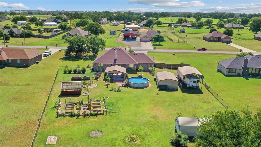 MOTIVATED SELLER!! BROCK AMERICA SPECIAL !!!! ONE OWNER !!! NEW AC INSTALLED SEPT 2024. Super Clean Open concept home with AWESOME back yard and POOL!! 2,418 SQ FT with enclosed garage, multiple storage buildings, covered patio, RV or equipment parking. LUSH GARDEN and chickens too if you choose. Excellent location just west of Weatherford right off I20 in BROCK ISD. NO HOA !!! Solid fencing and HORSES are welcome in this neighborhood.