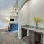 Inside, you’re greeted by a dedicated office featuring stylish wood-look ceramic tile flooring. The open-concept layout connects the living, kitchen, and dining areas—perfect for entertaining or everyday living. The kitchen boasts granite countertops, a designer backsplash, stainless steel appliances, a large island, and an eat-in dining space.