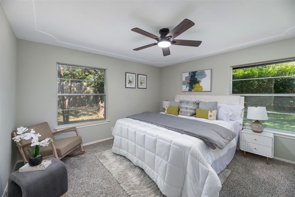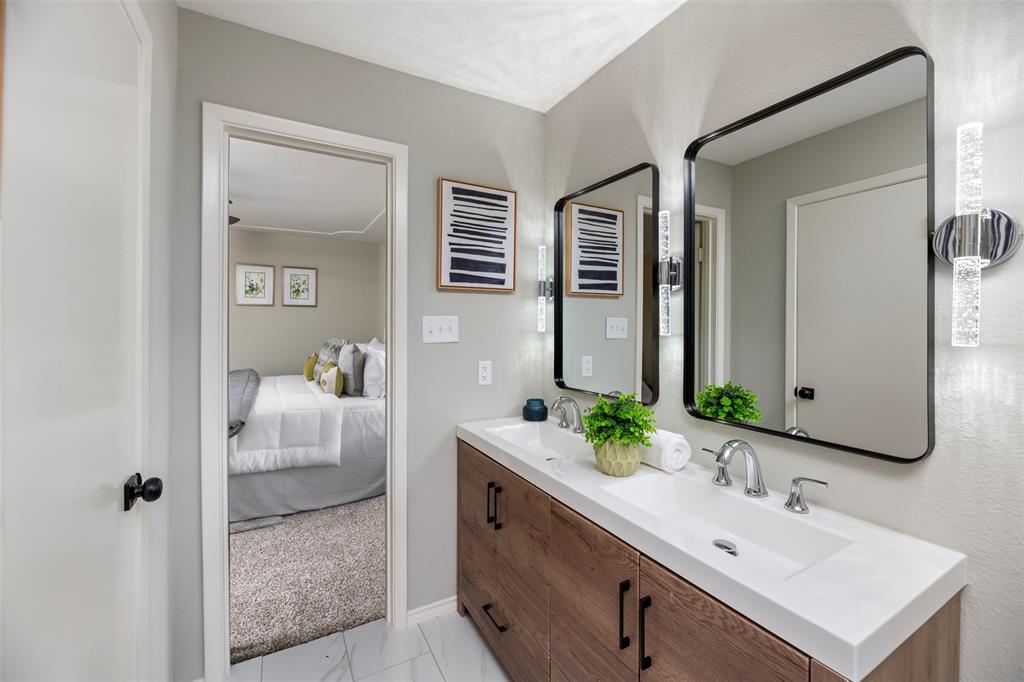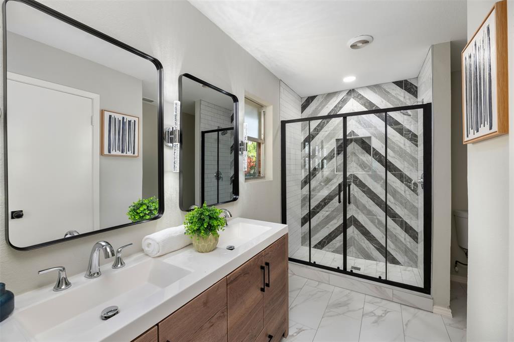 Stunning, updated home located at the top of a cul-de-sac in a great neighborhood with mature trees and well kept homes. The open floorplan is ideal for entertaining as the kitchen, living room and dining space all flow together. The kitchen has a seven foot island that doubles as a breakfast bar. The primary bedroom has a double vanity and walk in closet while the secondary bedroom have an adjoining Jack and Jill bathroom. Updated completed Sept. of 25 include a new 30 yr roof, paint inside and out, all flooring, front door, granite counter tops, stainless appliances, back splash, all plumbing fixtures and light fixtures, kitchen cabinets, bathroom vanities, cabinet and door hardware, toilets, sinks, tub and shower tile surrounds and much more! The garage is oversized and has a walk in storage closet. The backyard is shaded and has good privacy. This home will not disappoint.