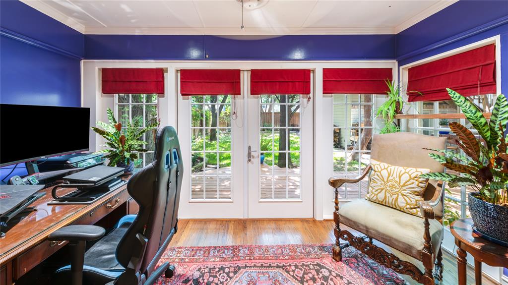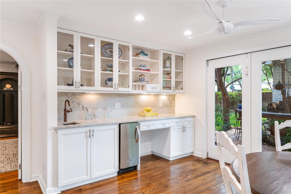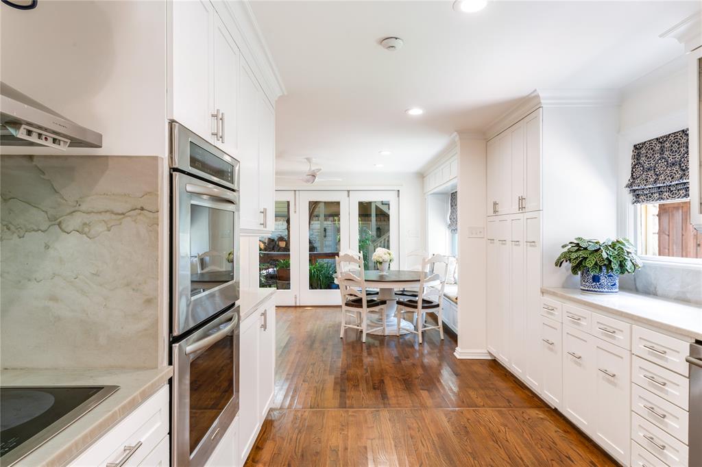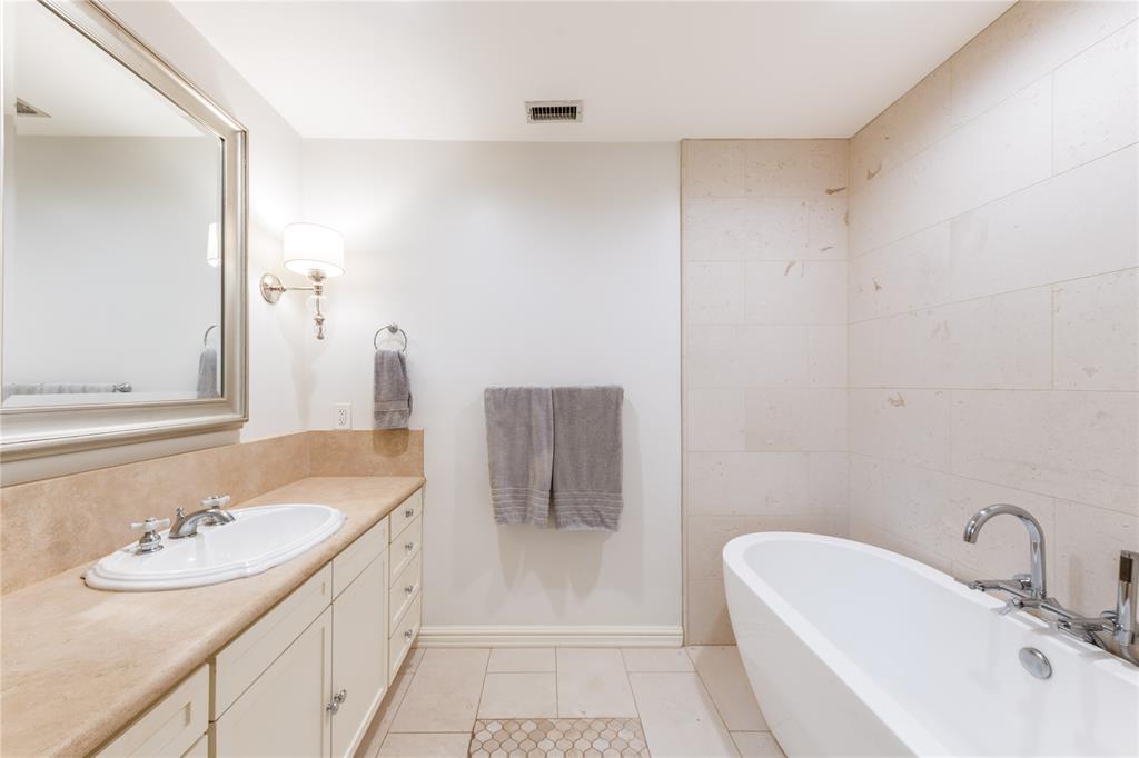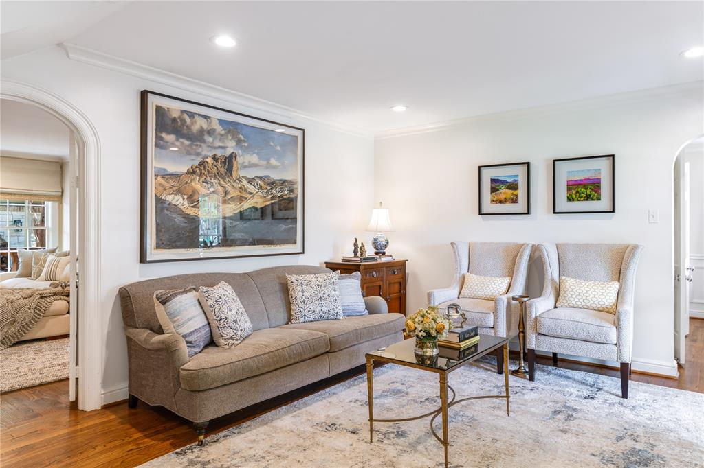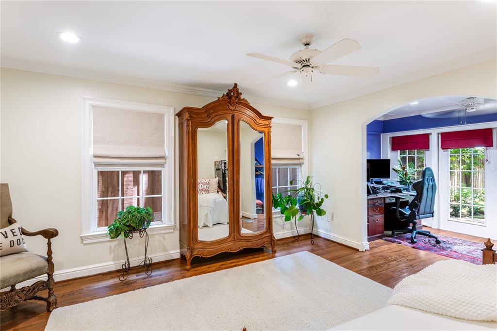 Located in one of University Park’s most sought-after locations and zoned to Hyer Elementary, this charming Austin stone traditional offers the perfect blend of comfort, space, and convenience. Enjoy walkability to parks, shopping and dining on Lovers Lane or Preston Center, plus easy access to work via Preston Road and the Tollway, and Highland Park schools. Designed with an excellent flow and easy layout, the home features both formal and casual living spaces, including a gracious living room with fireplace and an attached dining room filled with natural light. The updated kitchen, complete with stainless steel appliances, opens to a breakfast room and wet bar—perfect for morning coffee or weekend entertaining. The inviting family room connects seamlessly to the kitchen and overlooks the back patio and lawn, offering ideal indoor-outdoor living. Unique to this home are dual primary suites, one on each floor. The downstairs primary boasts two walk-in closets, a private office, and a spacious bath with separate tub and shower. Upstairs, the second suite offers its own updated bath, two walk-in closets, and access to a lovely covered balcony. Two additional upstairs bedrooms share a generously sized Jack-and-Jill bath, and all feature ample closet space. The upstairs utility room with sink adds everyday convenience. Out back, a detached two-car garage includes a spacious guest suite or bonus room with wet bar, full bath, and abundant storage—ideal for guests, playroom, or home office. The beautifully landscaped backyard is ready for gatherings, with plenty of space for a pool, play area, or outdoor entertaining. A motorized back gate adds privacy and security to the extended drive. This is easy University Park living at its best.