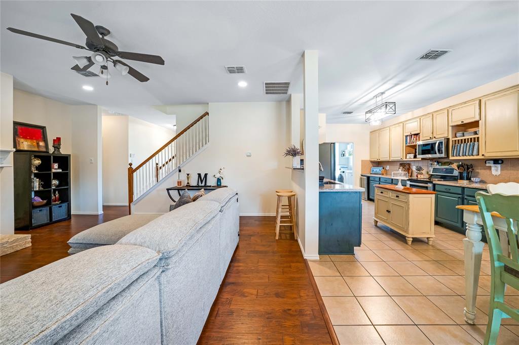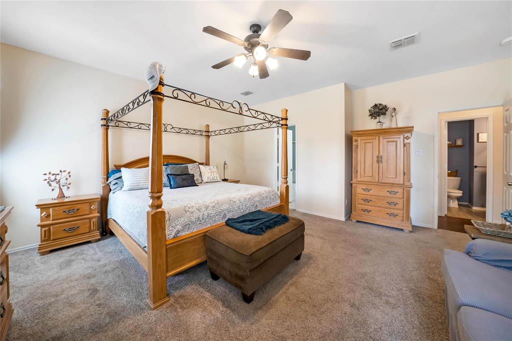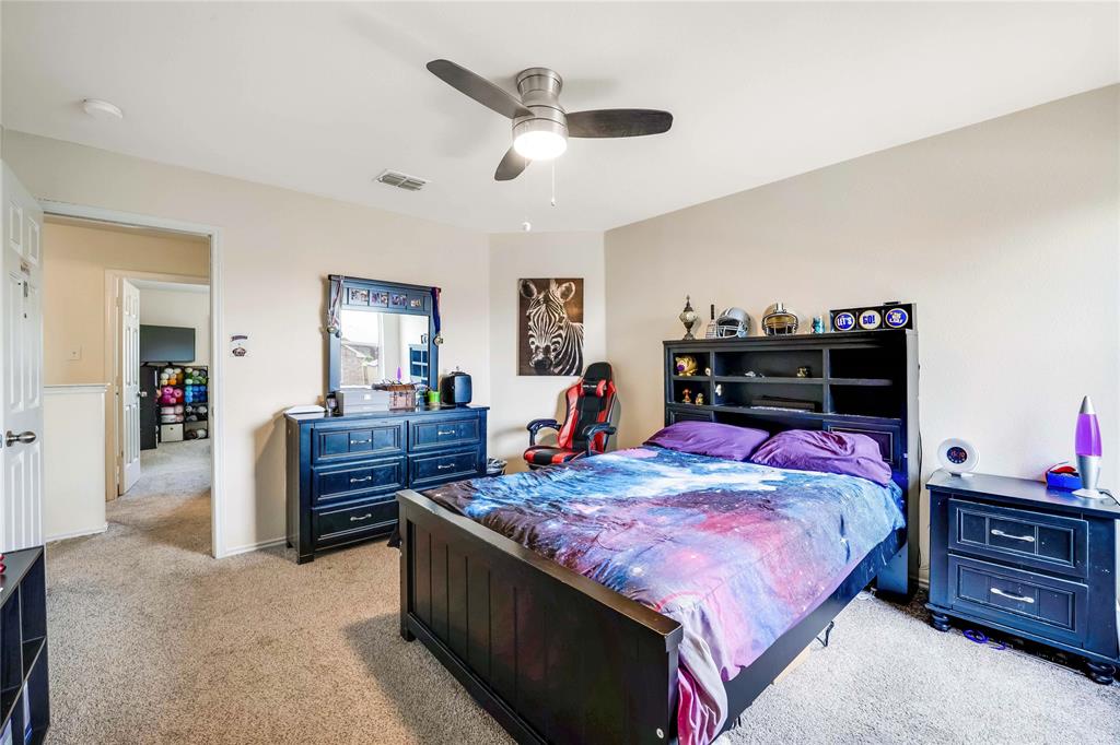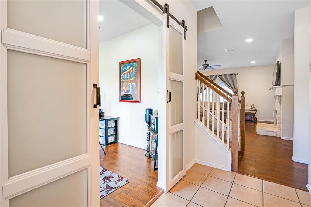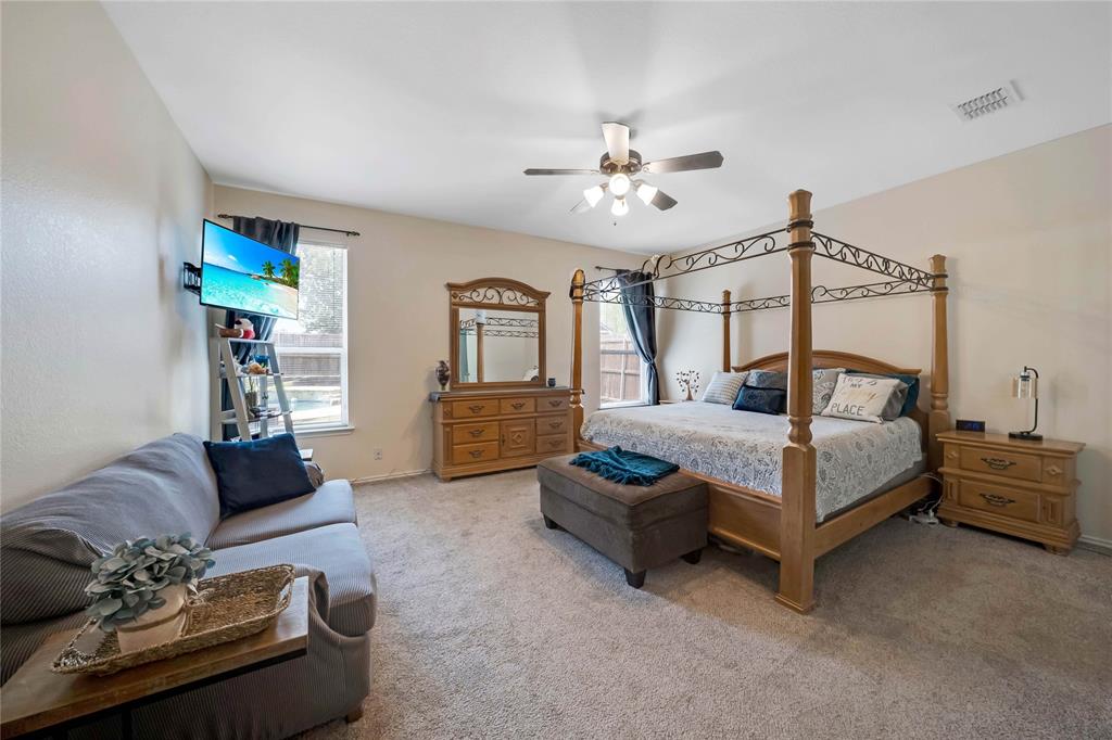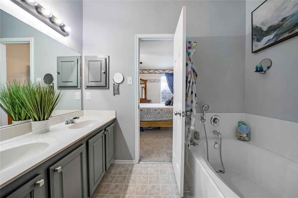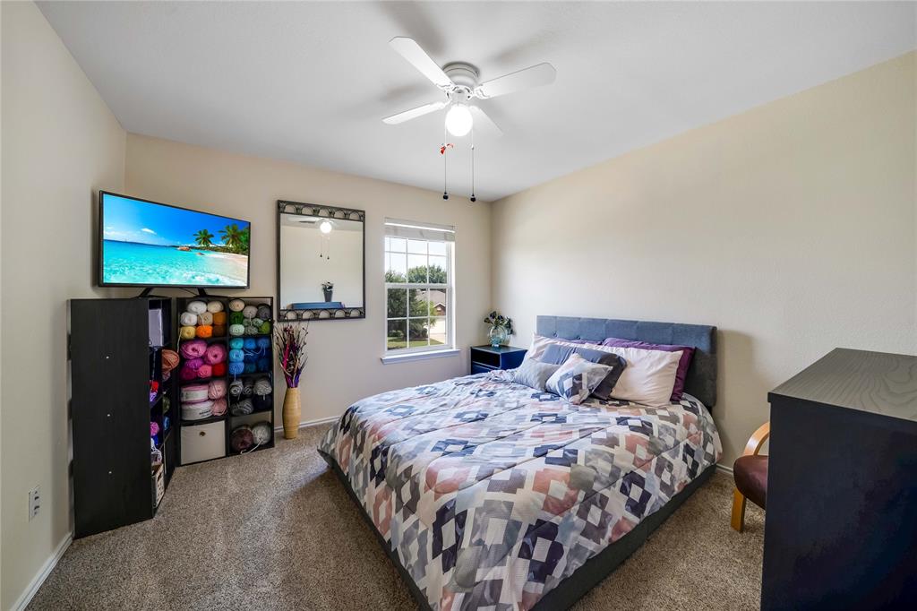 Gorgeous East-Facing Two-Story with Sparkling Pool! This stunning home showcases a light and bright open concept layout with tasteful upgrades throughout. Featuring 4 bedrooms plus a dedicated study! Beautiful hardwood floors flow through the main living areas, leading into the chef’s kitchen with two-tone cabinetry, quartz countertops, stainless steel appliances, and a walk-in pantry. The kitchen opens seamlessly to the spacious living room, anchored by a cozy fireplace, perfect for gatherings and everyday living.The private primary retreat is conveniently located on the first floor and boasts a spa-like bath with dual vanities, a soaking tub, glass-enclosed shower, and walk-in closet. Upstairs, you’ll find a spacious flex space along with secondary bedrooms for family or guests. Step outside to your backyard oasis, complete with an extended covered patio, pergola, sparkling pool with lounging benches and dive rocks, and a privacy fence! The large backyard provides plenty of room for pets or play, an ideal setting for Texas summers and year-round entertaining! Neighborhood amenities include a community pool, splash park, playground, and scenic walking trails. All this, just minutes from highway access, local restaurants, and shopping.