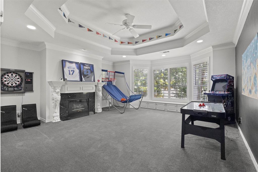 Property has been recently evaluated by a licensed appraiser. Waterfront Luxury with Resort-Style Amenities in Colleyville’s Coveted Summertree. Discover canal-front serenity in this immaculate 6-bedroom, 7-bath estate. A dramatic marble-tiled foyer, crowned by an elegant chandelier and a sweeping staircase, sets an unforgettable first impression. Throughout the main level, rich engineered wood floors, deep crown moulding, and soaring ceilings frame a gracious living room anchored by a stately fireplace. New Roof July 2025 and some new windows in BRs, dining and living. The chef’s kitchen marries beauty and performance with custom cabinetry, soft-close drawers, a built-in Fisher & Paykel refrigerator, and an adjoining butler’s pantry. Daily living is elevated by a private home gym, a spacious game room, and a rear staircase leading to the custom theater, crafted for cinematic magic with state-of-the-art visuals, immersive acoustics, and tiered seating.