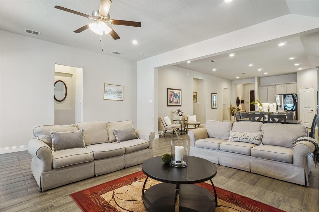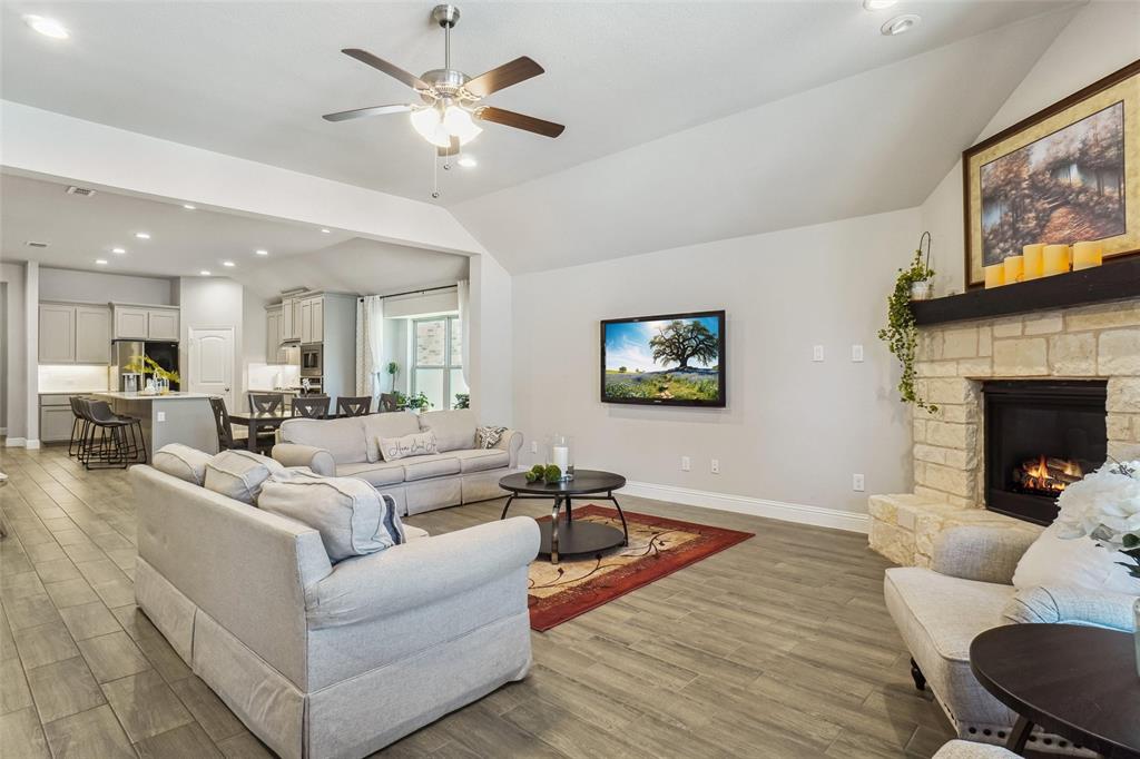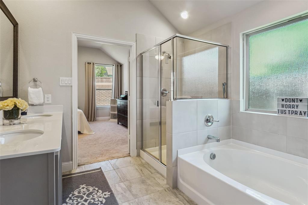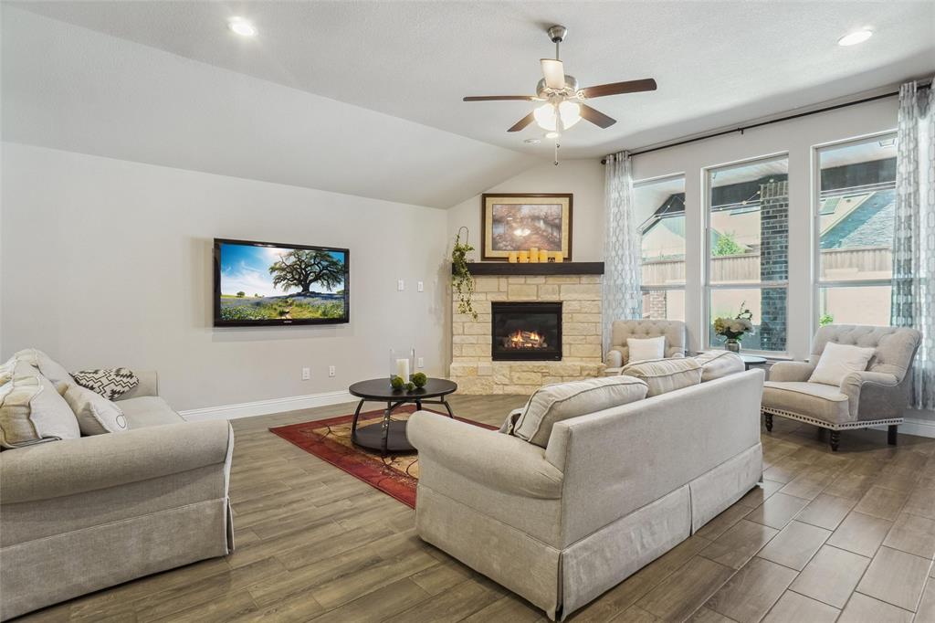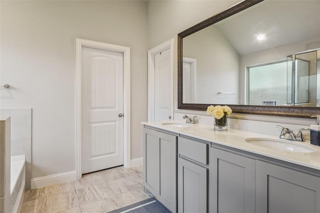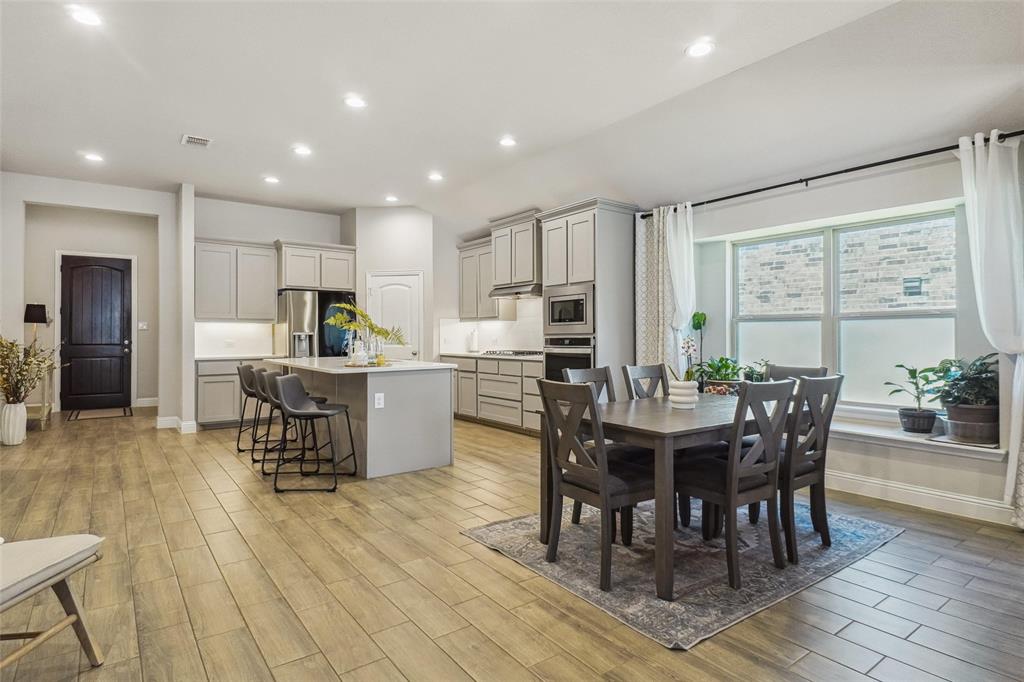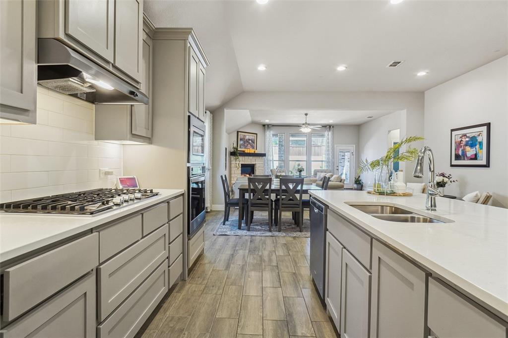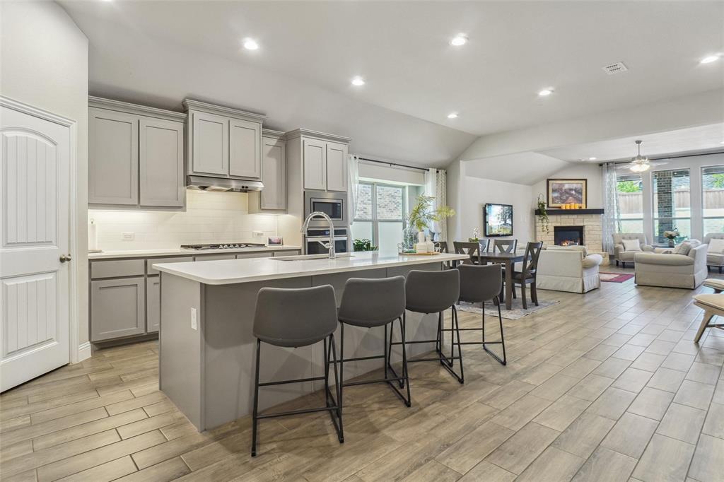 Impression Homes. Kingston Floor Plan This large one story has a beautiful entryway. The plan offers a California kitchen that flows into the dining room with boxed window seat. The large working island is a focal point for entertaining. The impressive living area offers lots of space for family gatherings. A corner fireplace adorns the corner wall. The private owners suite features double vanity sinks, garden tub, walk-in shower and large walk-in closet. Wood look tile floors have been added throughout. Ceiling fans are installed in all major rooms. Raised Ceilings, LED can lighting, neutral modern paint color makes this home light and bright. Full gutters have added to better care for the home. Outdoor Living with cooking station inside the covered concrete patio make for fun entertaining outside. Come see your new home in award winning Argyle ISD. This home is move in ready at an affordable price.
