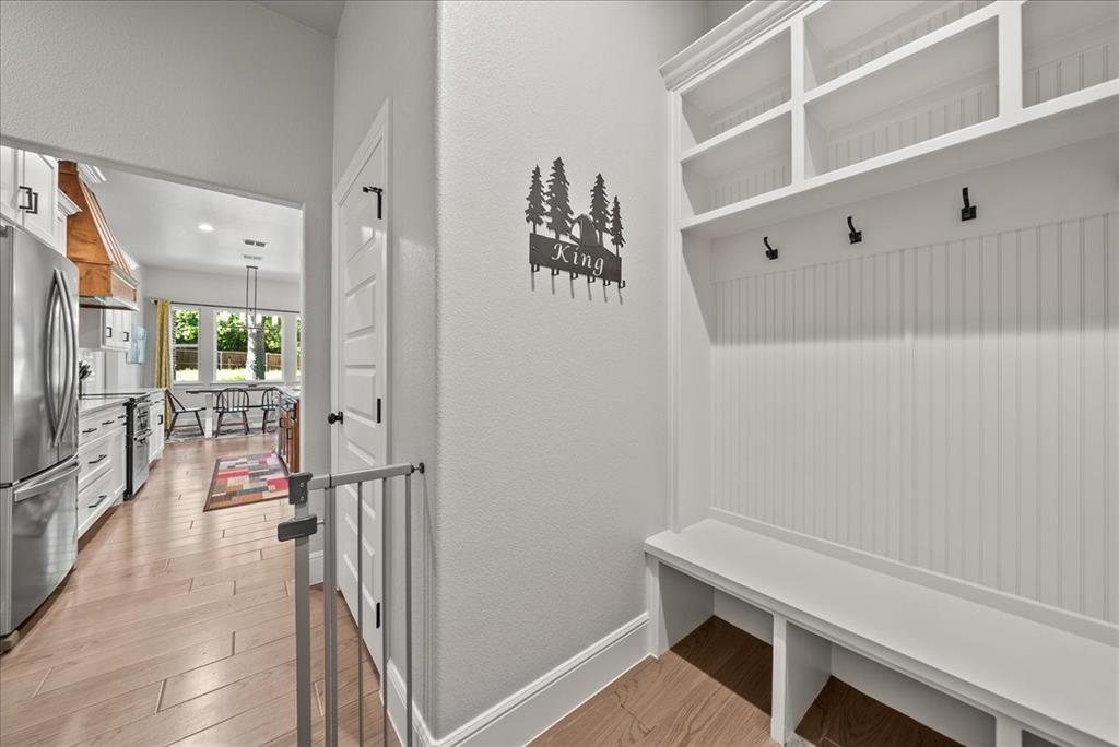 Practical touches like the mudroom with cubbies and hooks off the garage make everyday organization a breeze.