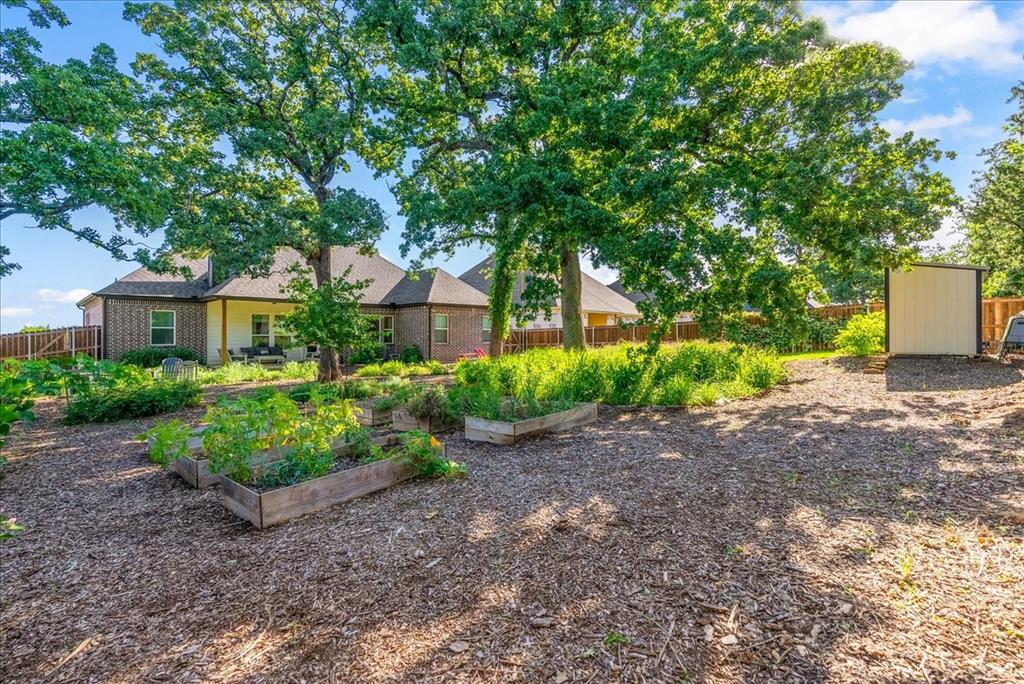 Step outside to a beautifully landscaped backyard that’s as functional as it is peaceful. Enjoy the shade of large, mature post oak trees, relax on the covered patio, or tend to the raised garden beds and fruiting plants. The entire yard is filled with native landscaping that’s designed for beauty with minimal water needs.