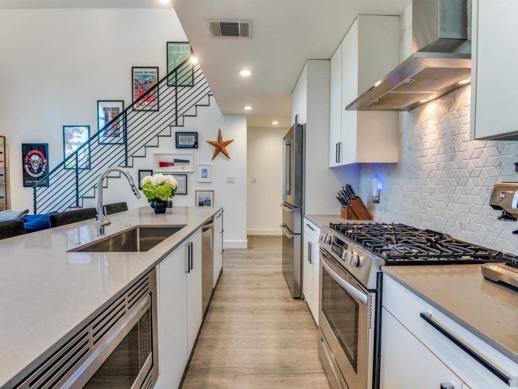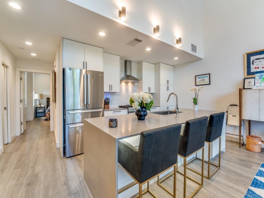 The chef’s kitchen shines with a large quartz waterfall island, integrated lighting, and sophisticated finishes. Efficient, elegant, and thoughtfully designed—this home offers a rare combination of high-end aesthetics and everyday practicality in the heart of one of Dallas’ most vibrant neighborhoods. 5 minutes from Dallas's hottest entertainment and food districts, including Lower Greenville, Downtown Dallas, Uptown, and Deep Ellum. Owners can walk to coffee shop and local restaurants nearby. Urban living at its best!
